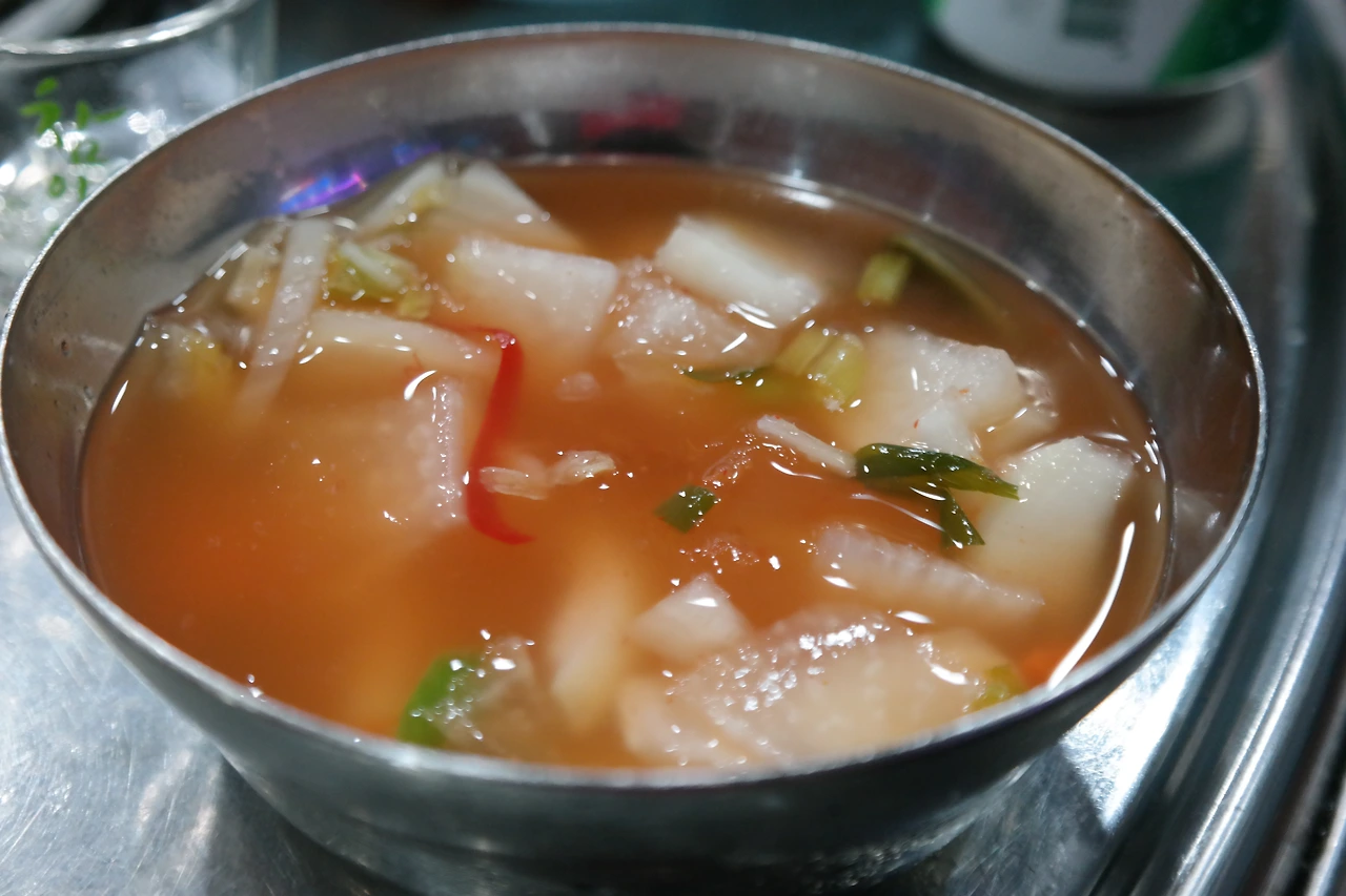 그리고 곱창을 먹다가 좀 배불러진다 싶을 때 동치미를 먹으면 다시 리셋이 되면서 곱창을 와구와구 먹을 수 있게 된다. 여름에 가면 동치미가 살얼음이 끼어있는데, 시원하면서 새콤한 맛이 후식으로 제격이다.
