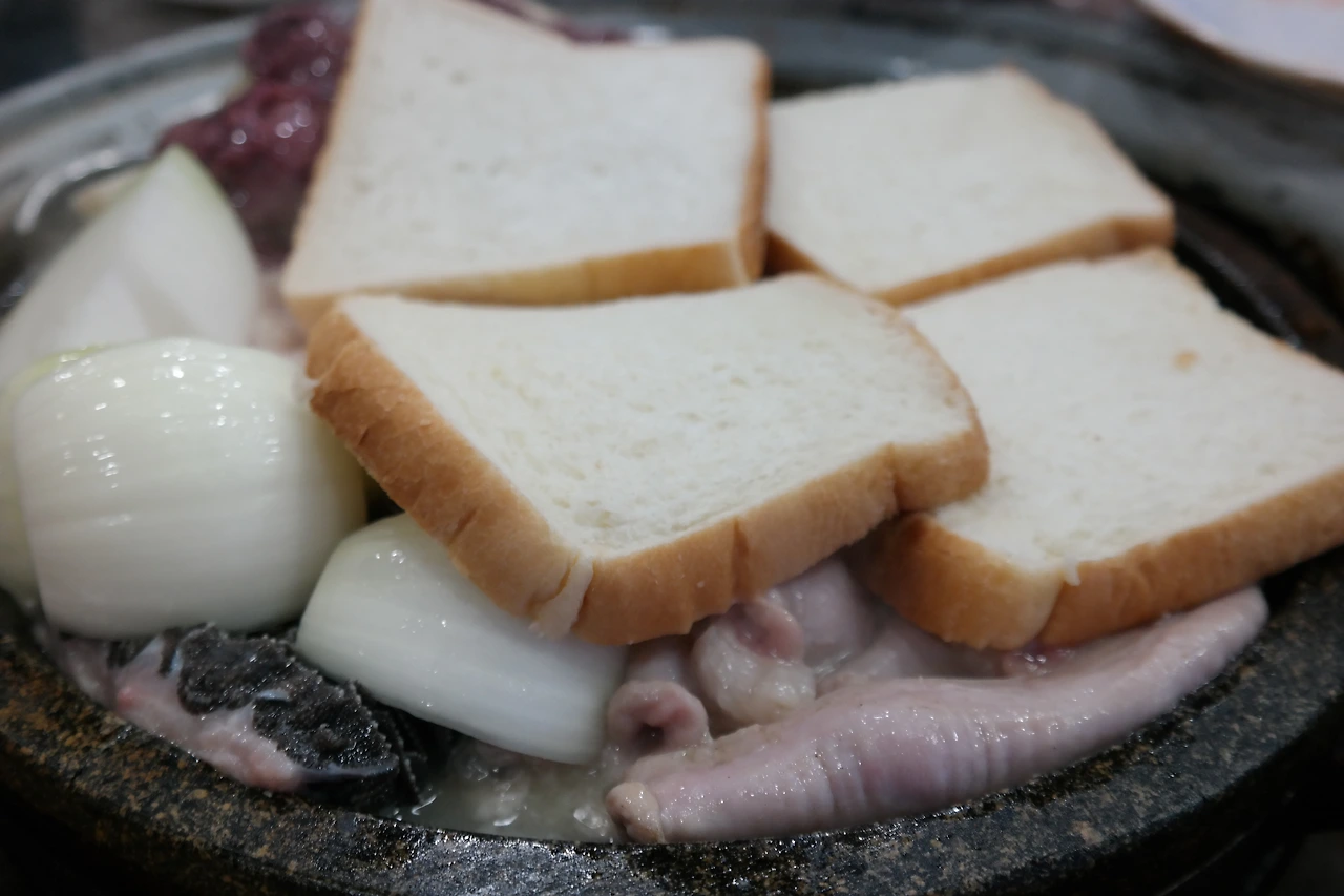 곱창을 주문하면 곱창 위에 식빵이 올려져 나온다. 곱창에서 나오는 기름을 흡수시키기 위함이다.