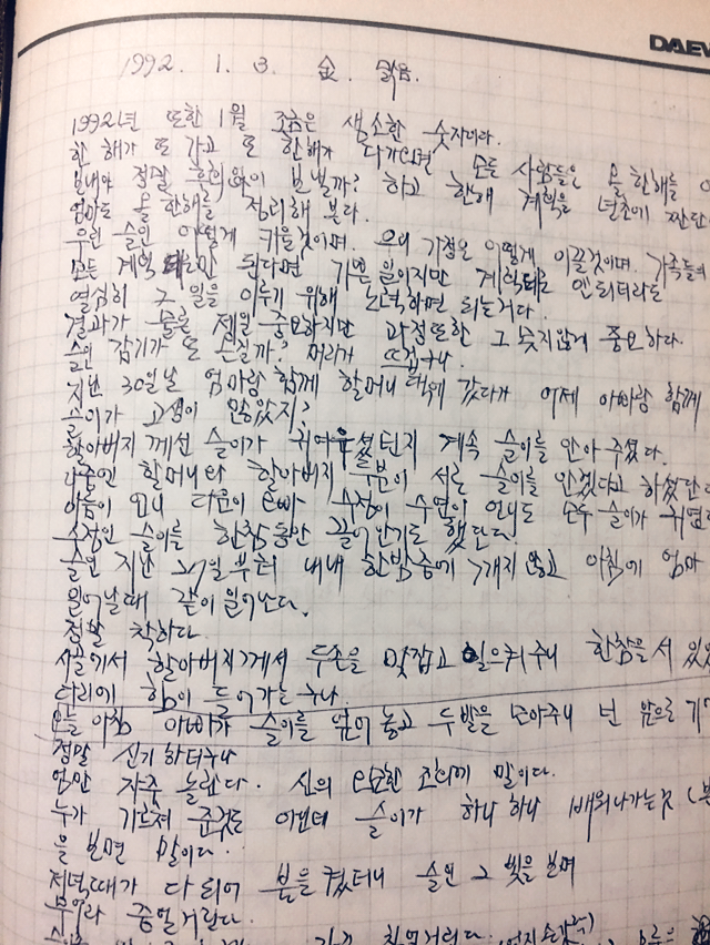 1992.1.3. 금 맑음 엄마가 쓴 일기입니다.