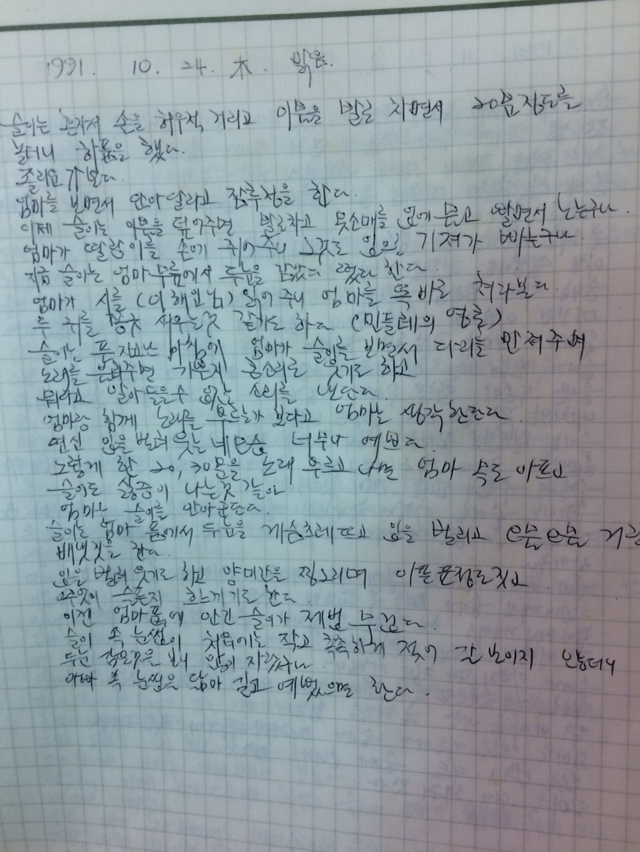 1991.10.24. 목 맑음 엄마가 쓴 일기입니다.