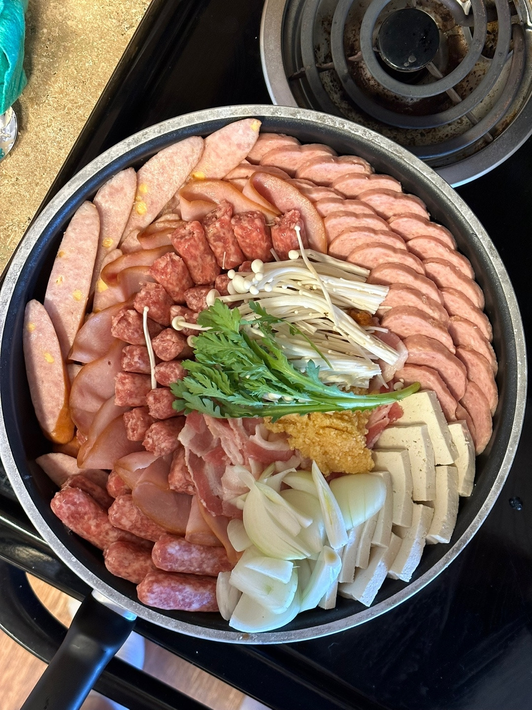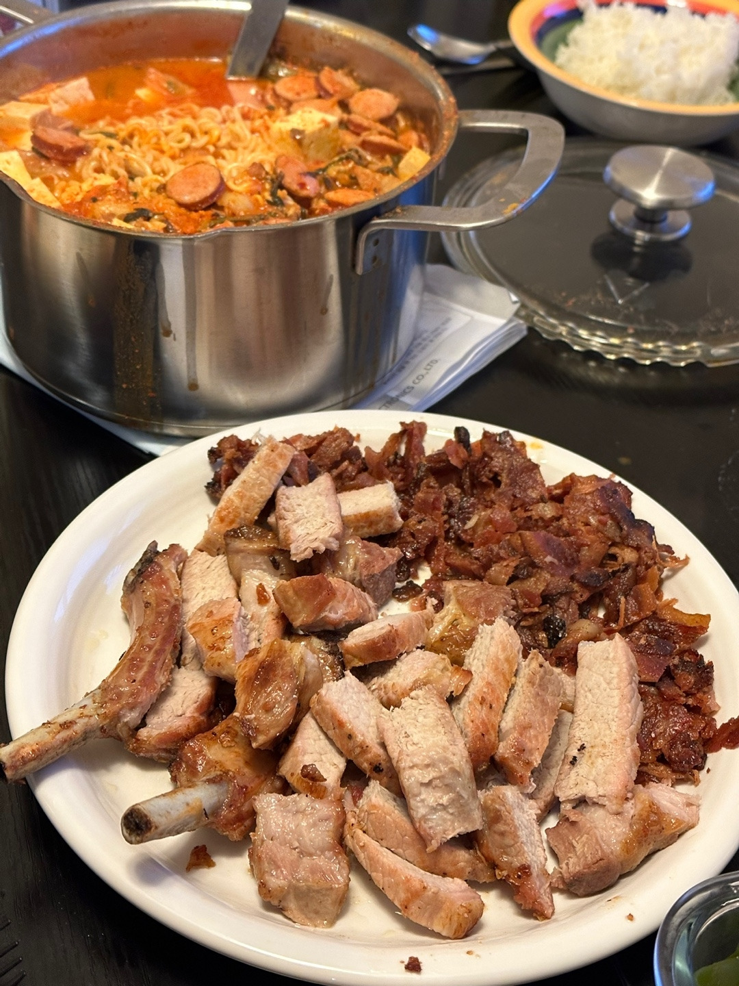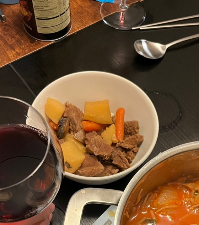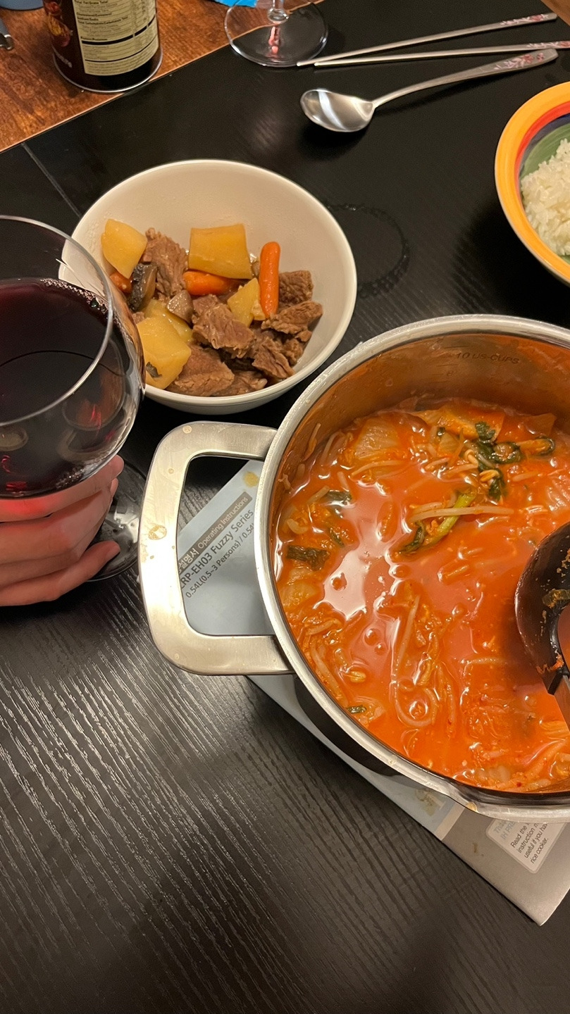 부대찌개는 한식인가? 라는 질문에 대해서는 명확하게 대답할 수 있다. 부대찌개는 한식이다. 한국만큼이나 스팸과 쌀밥에 진심인 민족도 없을 뿐더러, 한국 바깥을 벗어나기만 해도 감히 스팸으로 육수를 내어 국물 요리를 만들 생각조차 못한다. 부대찌개의 탄생은 미군부대에서 흘러 나온 미국식 식재료지만, 거기에 한국의 맛을 더해 누가봐도 쌀밥에 어울릴만한 칼칼하고 감칠맛 넘치는 찌개가 완성된 것이다. 그렇기에 미국에 와서 꼭 한번은 미국식 햄을 듬뿍 넣고 부대찌개를 끓여보고 싶었다. 마침 사촌처제 냉장고에 오래된 김치가 있었기에 부대찌개에 보탤 수 있었다. 육수용으로 사골육수 진공포장팩 등을 구하면 좋다. 정 없다면 사리곰탕면 스프라도.