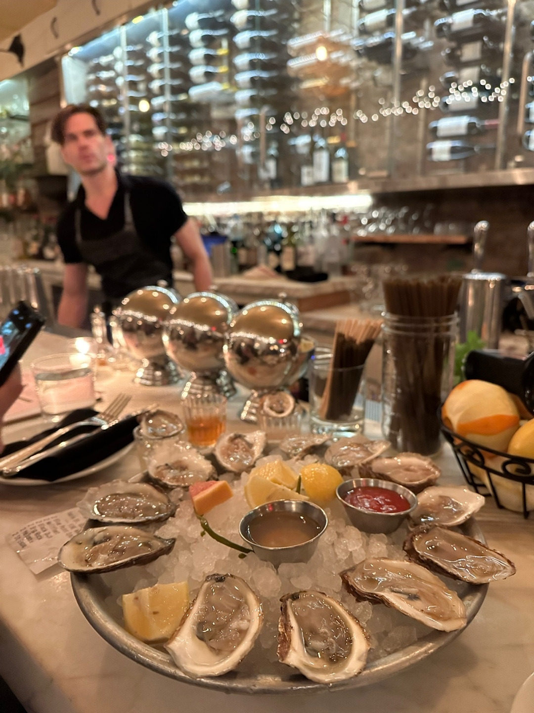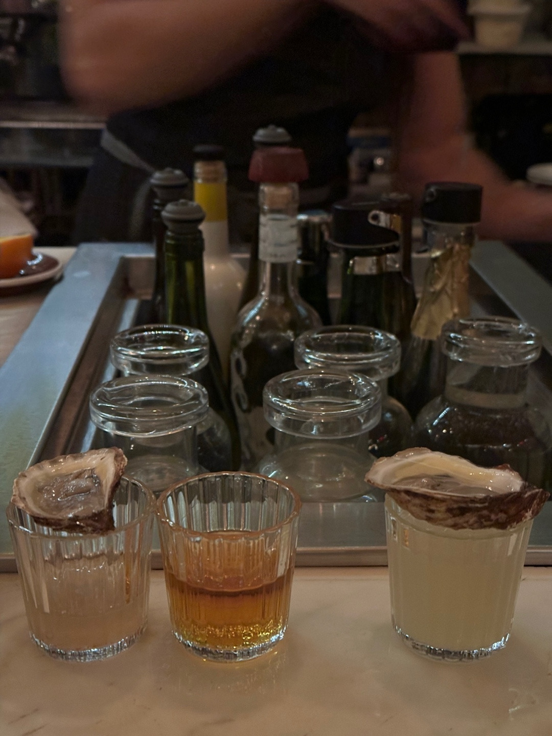 굴 가격도 그랜드 센트럴보다 30% 정도 전체적으로 저렴했다. 일단 신뢰의 상징 블루포인트와, 그 외 굴들을 섞어서 6종 12피스를 주문했다. 이 시간 동안 음미하면서 먹은 것은 분명하다. 다만 굴 6개를 먹는데 시간이 걸리면 얼마나 걸리겠는가. 블루포인트 외에는 결국 단점이 한 두개씩 존재한다. 먹은 굴 껍질은 뒤집어 두면서 마치 도장깨기 처럼 맛깔나게 먹고 있자니 직원들도 신나서 맛있냐고 계속 물어봤다. 결국 해피아워가 끝나기 전 우리는 두 번째 접시를 블루포인트에 올인해서 주문해버렸다.