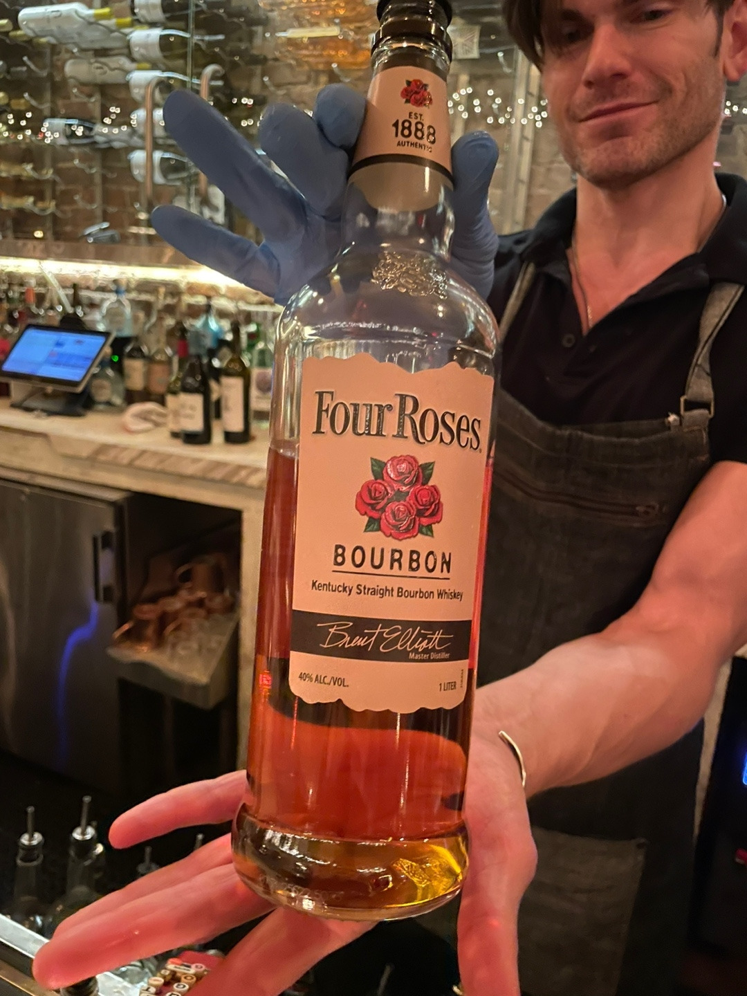 이번 미국여행 최고의 수확 중 하나인 피클백을 여기에서도 만나볼 수 있었다. (우리의 피클백 사랑을 확인하고 싶다면 여기에서 읽어보자) 6$를 내면 피클백에 굴까지 얹어 준다구요? 맨해튼 가격이 맞나 순간 의심했다. 말만 해피 아워가 아니라 정말 사람을 행복하게 만드는 시간이었다. 굴을 먹은 후 버번을 털어 넣고 상큼한 피클 쥬스로 입을 헹구니 이건 한 잔으로 멈출 수 없는 슈터였다. 오이스터 피클백에 쓰인 위스키가 워낙 부드럽게 잘 넘어가서 바텐더에게 물어보니 Four Roses라는 버번이라며 자신있게 보틀을 보여줬다. 옆에 있던 손님이 Yellow Roses도 맛나다며 추천 받은건 덤. 다시 보니 바텐더 참 잘생겼다.