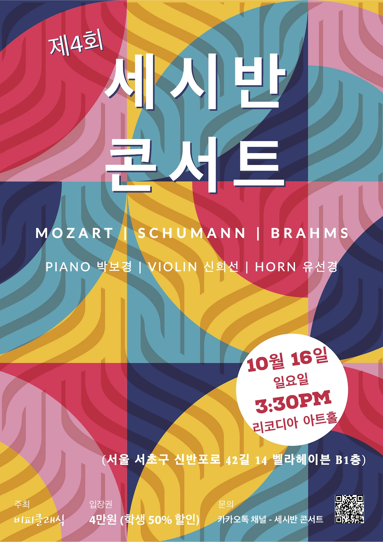 이번 일요일(10월16일) 오후 세시반, 반포에 있는 리코디아 아트홀입니다.