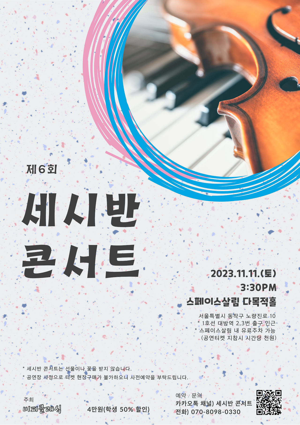 * 세시반 콘서트의 취지: 실력 있는 뮤지션들이 음악 애호가들에게 소개되는 기회를 마련. 엄마가 설치지 않아도 음악을 할 수 있는 환경을 만들고 싶다. (부연 설명 - 한국에서 음악 하는 사람들 중에는 돈으로 음악 하는 경우도 물론 있습니다. 어릴 때 극성 부모 밑에서 만들어진 프로필, 돈으로 유학하고 돌아와서 돈으로 독주회 하면서 활동하는 사람들... 그런 거 말고 진실되고 실력 있는 연주자들이 쇼 말고 진짜 음악을 듣고 싶어 하는 사람들에게 소개될 수 있는 음악회를 만들고 싶었습니다.)