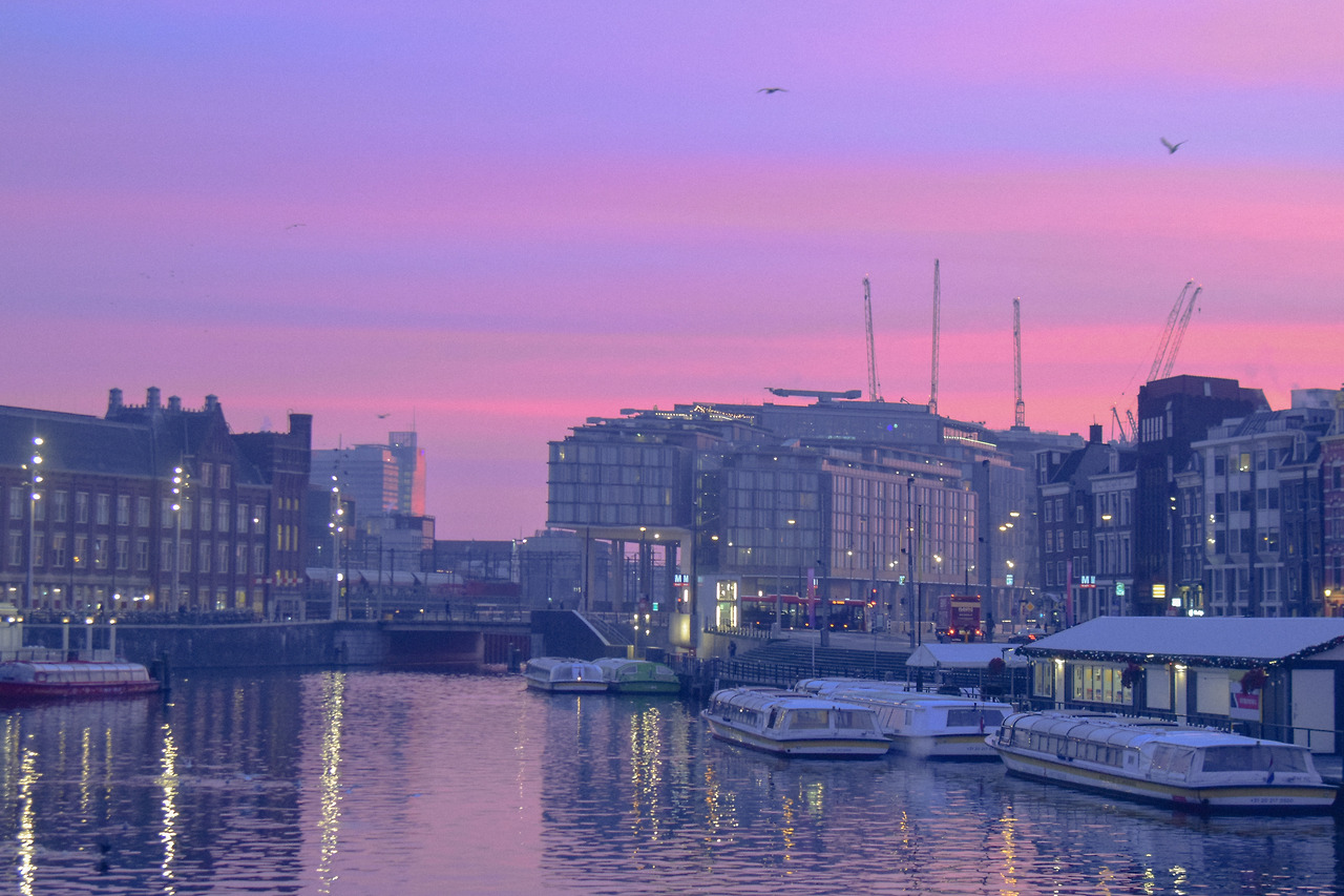 이 날의 일출은 암스테르담 사람들에게도 특별했던 것 같다. 어디에 숨어있었던 건지 사람들도 하나 둘씩 나와 함께 이 그림같은 하늘에 감탄을 내지른다. 캐리어를 끄는 사람은 물론 일상을 시작하던 사람들도 모두 함께 하늘을 사진으로, 영상으로 담는다. 이후 아무런 계획이 없었던 나는 변해가는 하늘 색이 또 좋아, 한참을 이 근방 밖을 쉽게 나서지 못했다.
