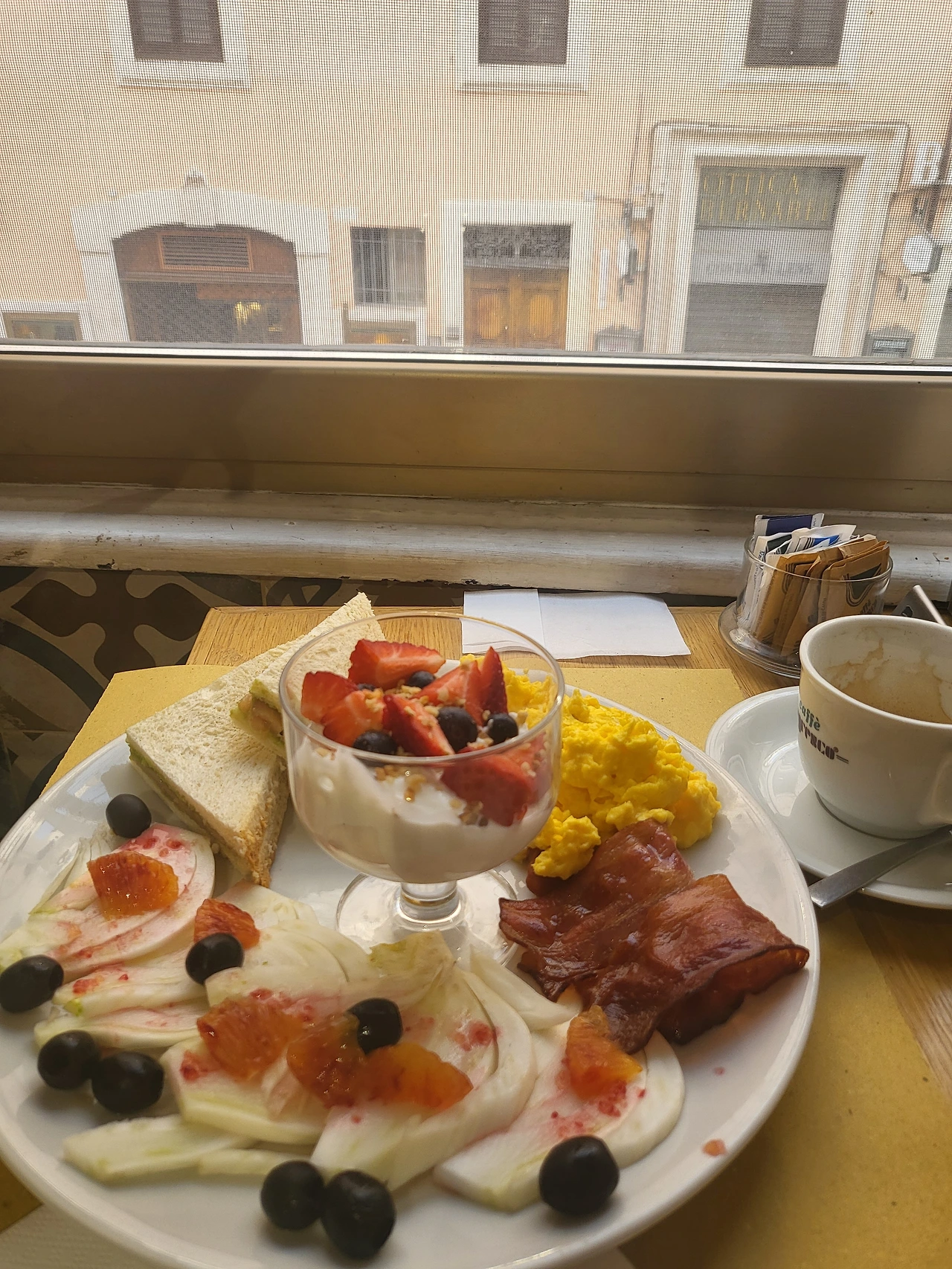 심지어 광장에 위치한 카페나 레스토랑에서 야외 테이블 자체를 아예 펼치지않을 정도로 궂은 날씨였다. 우리는 숙소에서 한 블럭 떨어진 카페의 2층에 올라갔다.
