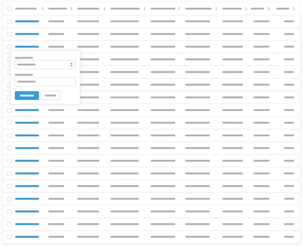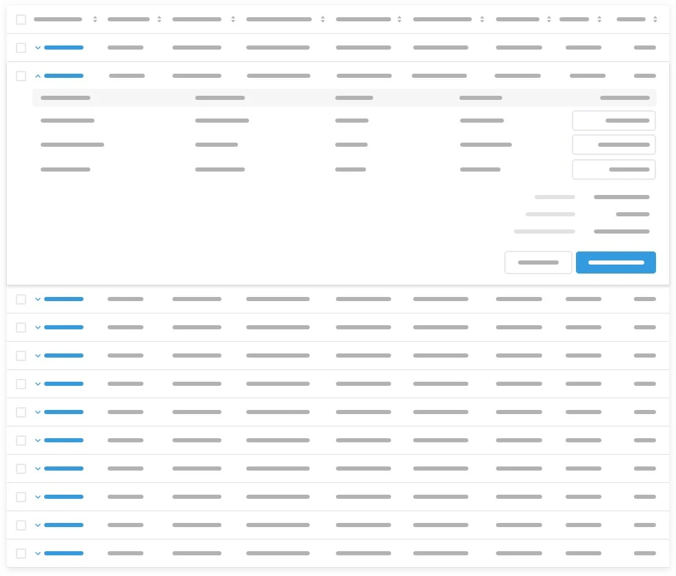 인라인 폼과 마찬가지로 편집 가능한 표를 통해 사용자는 데이터가 있던 위치에서 직접 데이터를 조작할 수 있습니다. 스프레드시트 또는 청구서 라인 항목의 경우와 같이 표 형식 데이터 입력에 유용합니다.