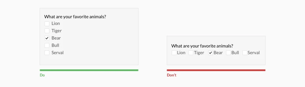 체크박스를 세로로 배치하면 항목들에 대해 쉽게 스캔이 가능합니다.
