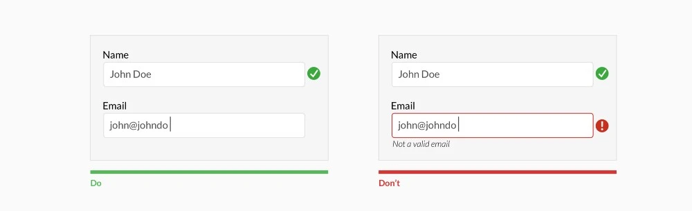 (인풋필드를 작성하는 프로세스에 도움이 되지 않는 한) 유저가 타이핑하는 동안 문자 수를 카운팅 하는 등의 유효성 검사를 실시하지 않는 게 좋습니다.