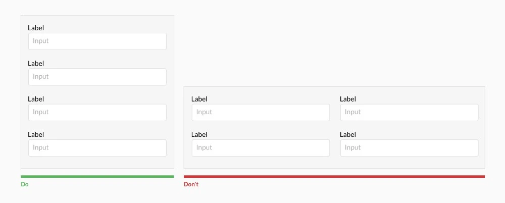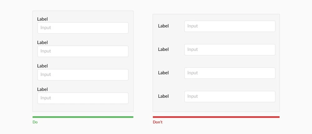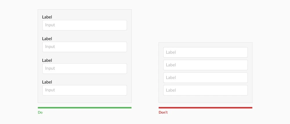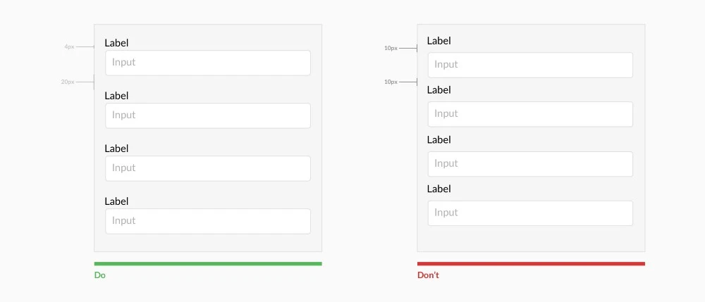 유저에게 혼동이 일어나지 않도록 레이블과 인풋필드는 가깝게 디자인하고,