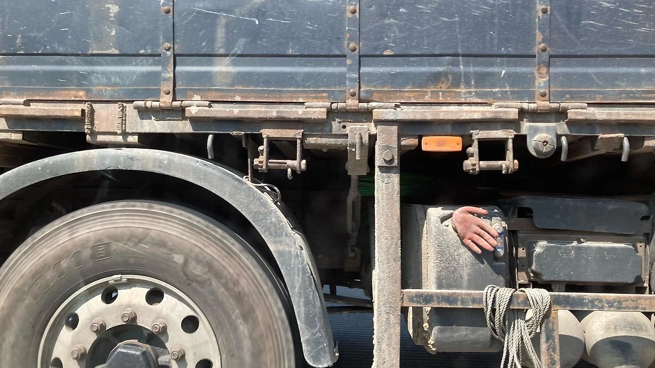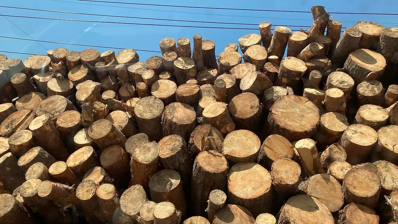 그 와중에 마주한 나무기둥 천 개 정도 실은 듯한
