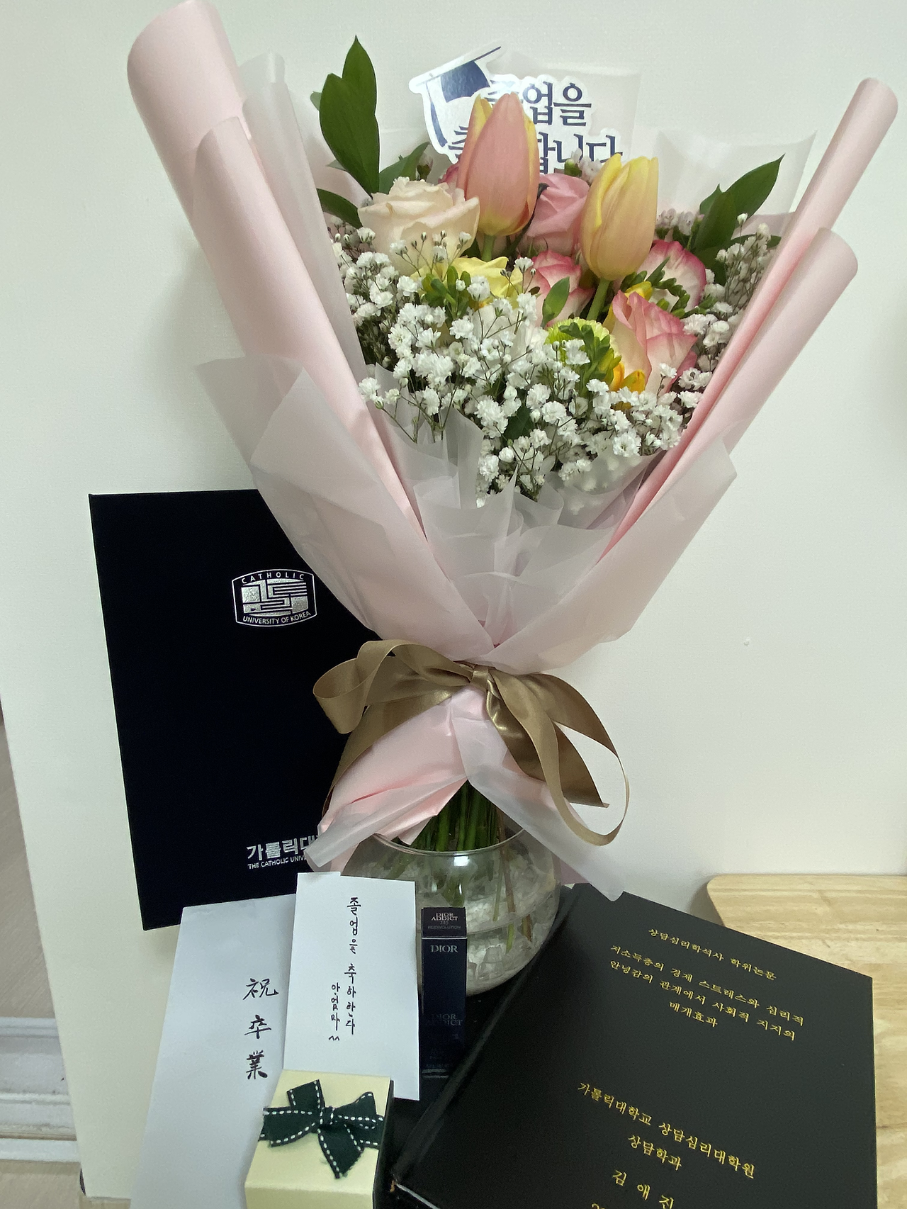 엄마와 남친이 와서 축하를 해주고 함께 식사를 했다. 남친과 엄마가 서로 처음 보기에 내가 다 어색했을 정도지였만, 날 축하해 주기 위해 어색함을 무릅쓰고 졸업식에 와준 두 사람에게 너무 고맙다.
