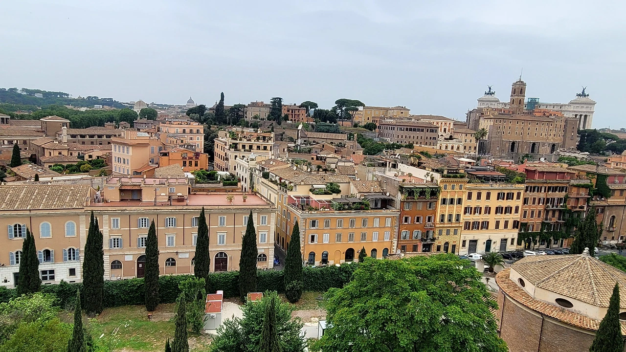 언덕 끝에 서서 로마 시내를 내려다본다.
