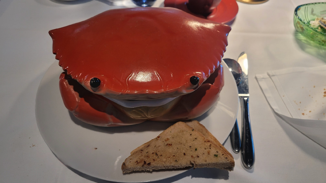 테이블로 배달된 것은 음식이 아니라 동그랗게 눈을 뜬 빨간 게 한 마리였다. 귀엽게 웃고 있는 그 모습에 웃음이 터져 나온다.