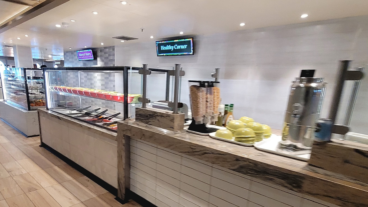 프린세스 호의 뷔페는 커다란 접시에 담긴 음식을 손님들이 직접 퍼가는 방식이 아니라, 음식이 1인분 그릇에 담겨 진열되어 있고 원하는 메뉴를 직원이 직접 접시에 놓아주는 방식이다.