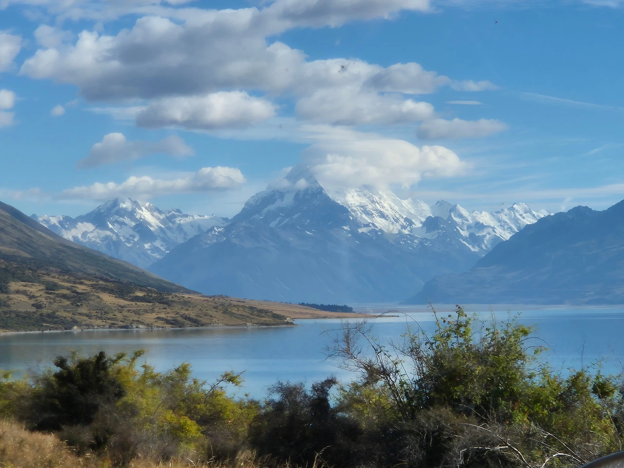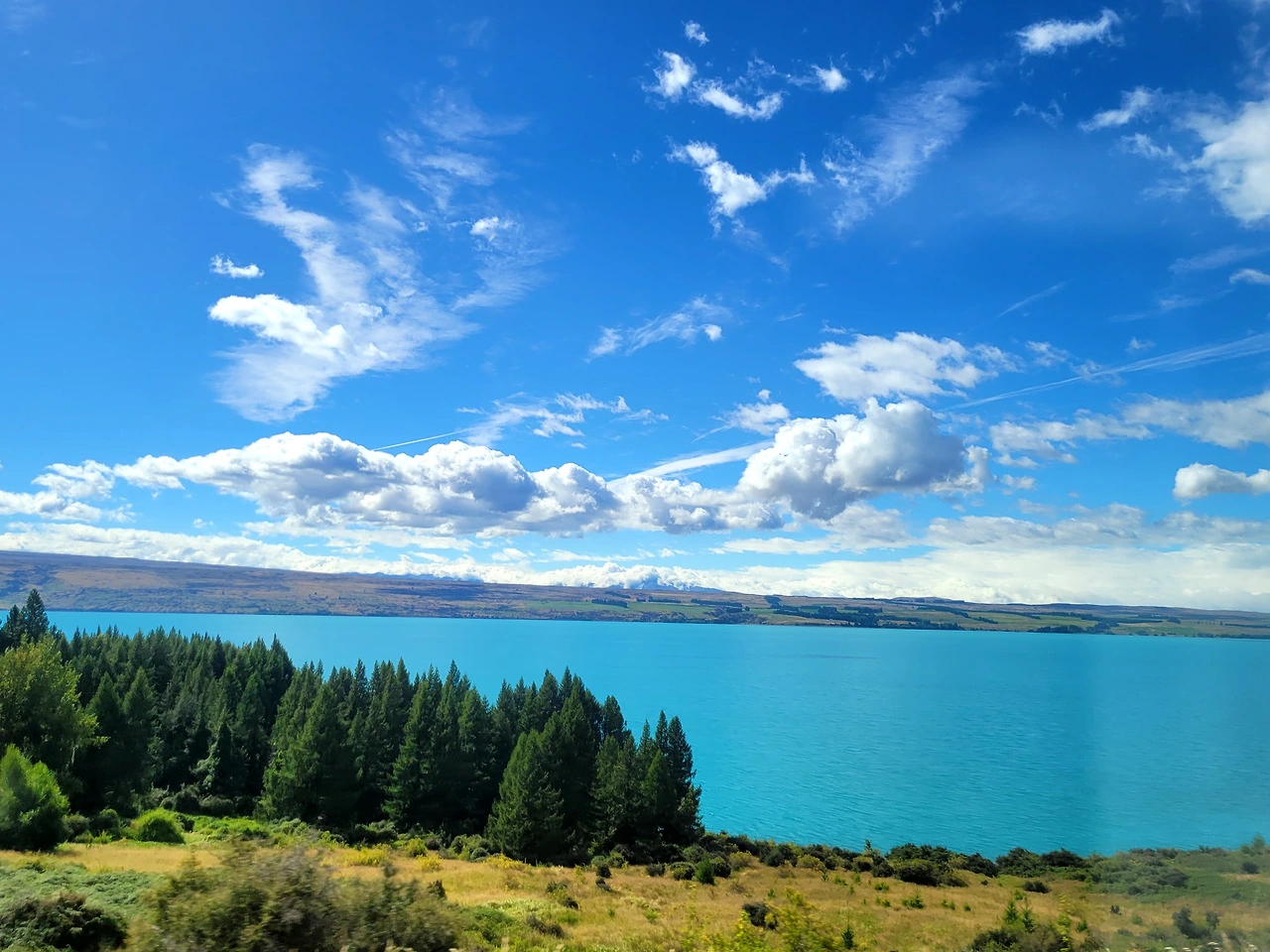 마운트쿡으로 향하던 길, 오전의 푸카키는 연한 물색이었으나 오후가 되자 색의 층위가 변했다.