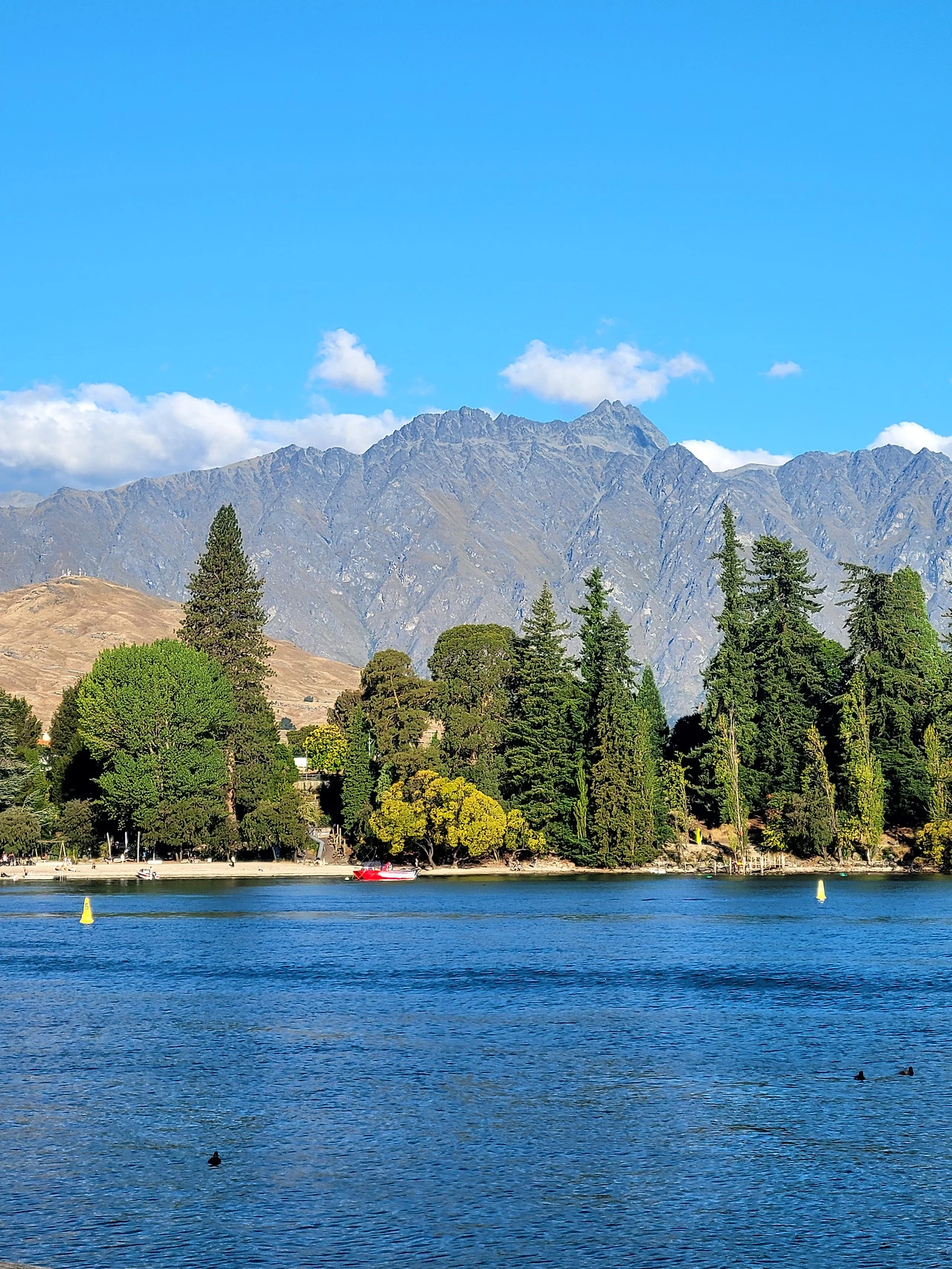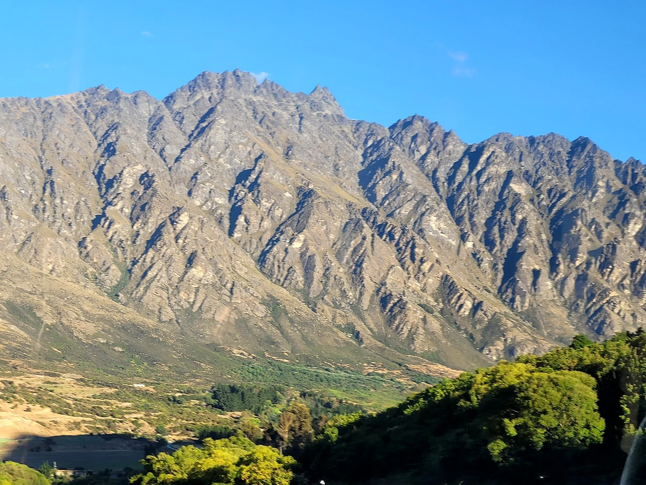 퀸즈타운 와카티푸 호수에서 바라보면 병풍처럼 펼쳐지는 거대한 회백색 암석들.