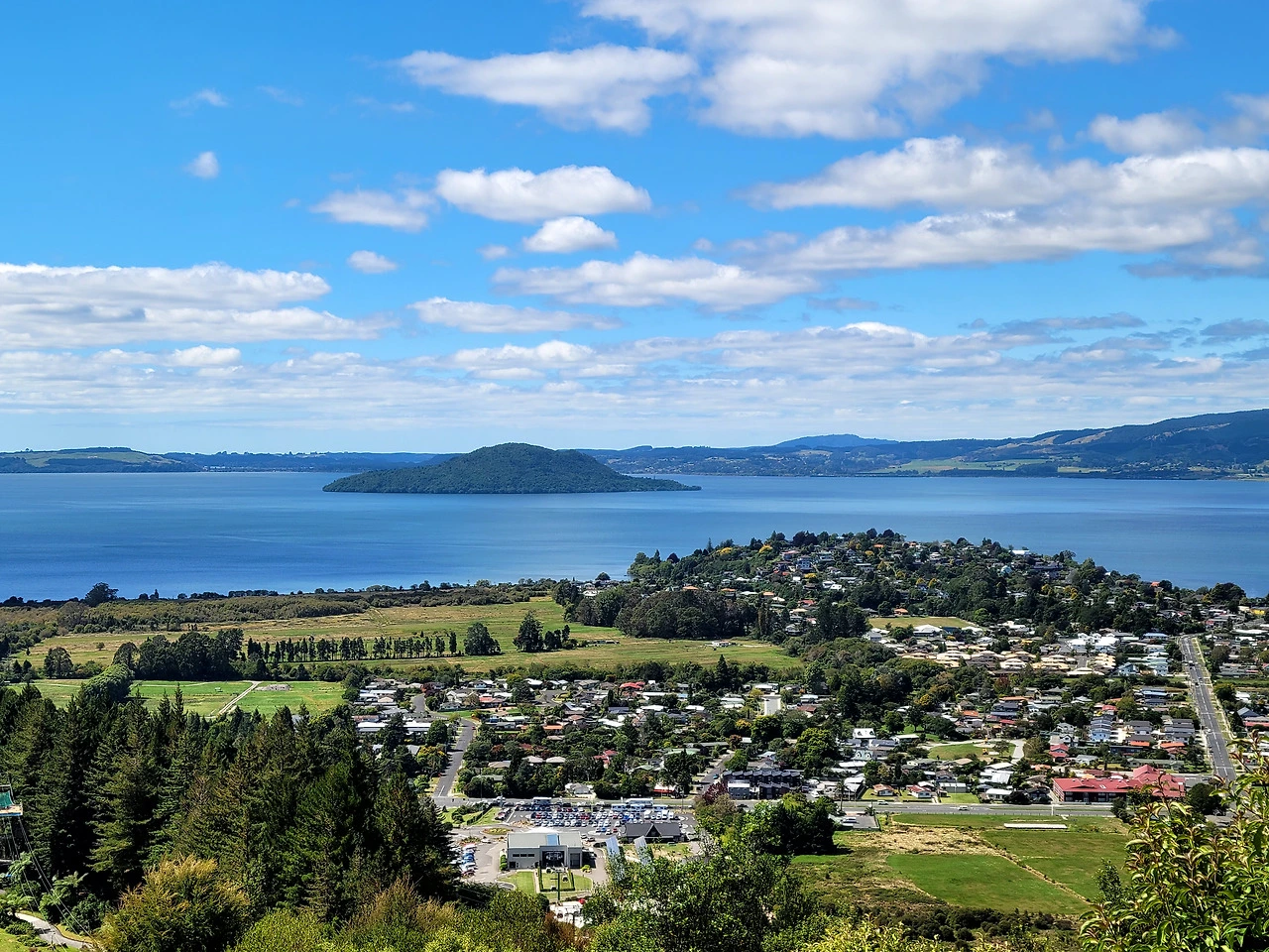 ⁴ 로토루아 스카이라인(Skyline Rotorua) 곤돌라를 타고 올라가면 있는 스트라토스페어 레스토랑(Stratosfare Restaurant & Bar). 통유리 너머로 로토루아 호수와 모코이아 섬이 한눈에 내려다보인다.