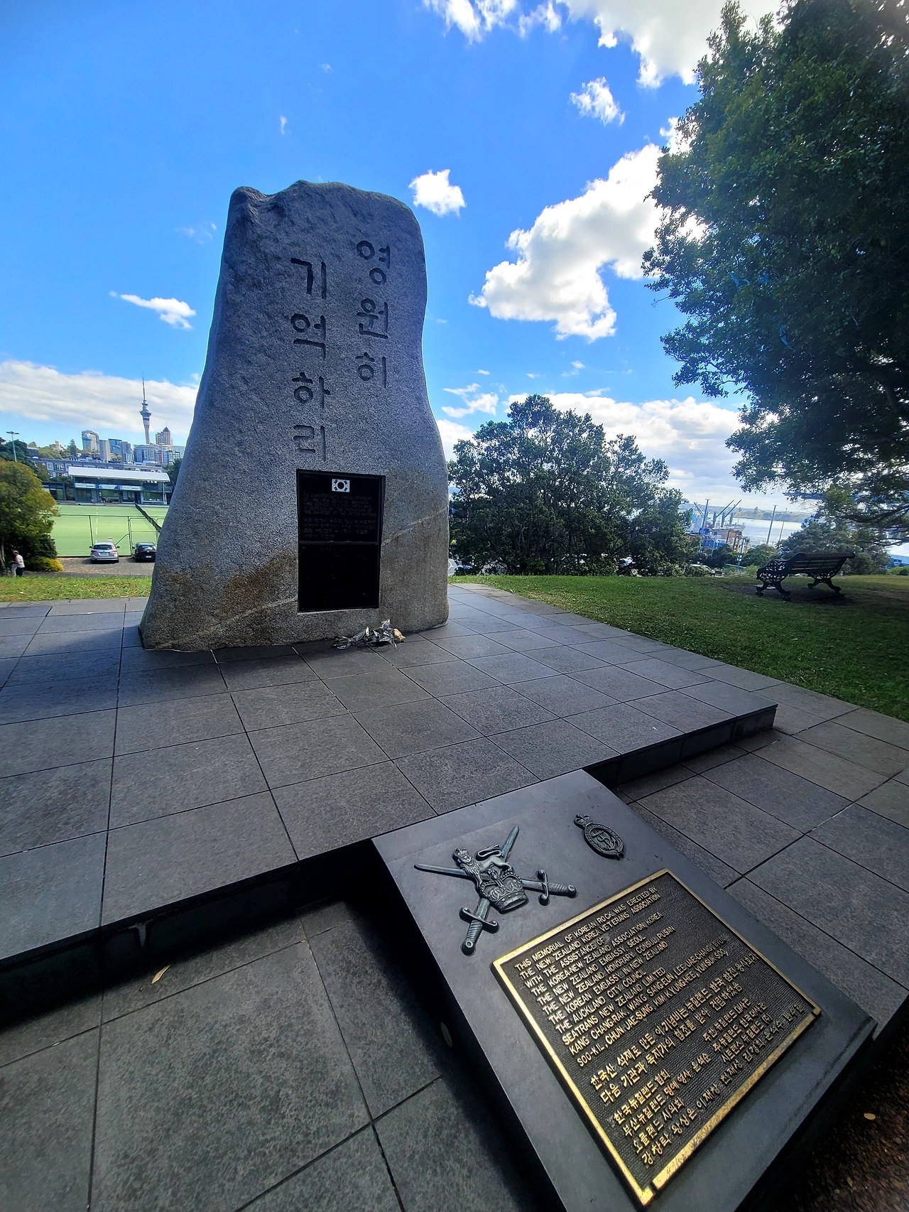 뉴질랜드 청년들이 그 먼 한국 땅까지 달려가 싸웠던 기록이 이곳 오클랜드의 흙 위에 새겨져 있었다. 비석에 박힌 돌은 한국 가평에서 직접 가져온 것이라고 전해진다.