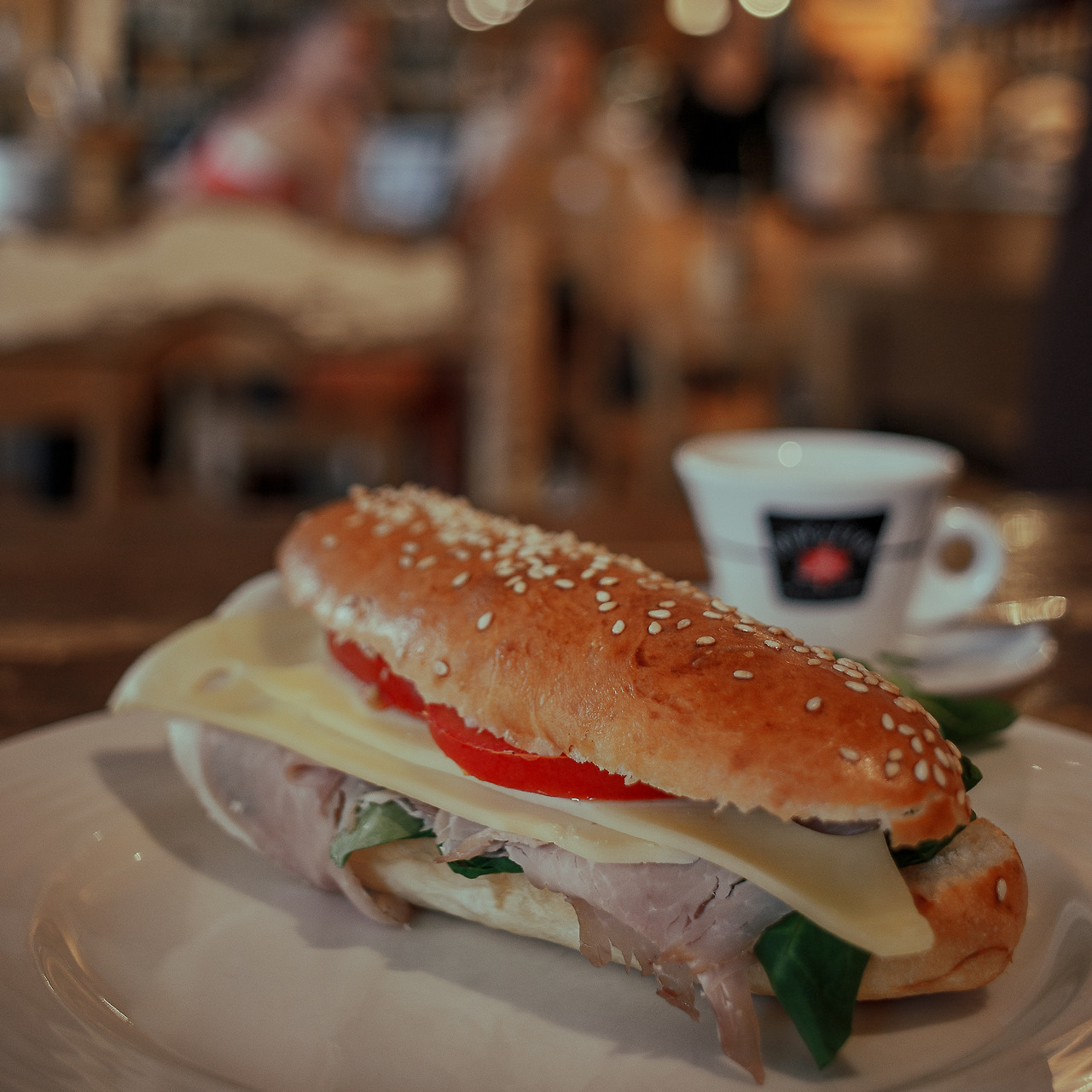내 앞에 놓인 건 바게트 샌드위치와 작은 잔의 커피.