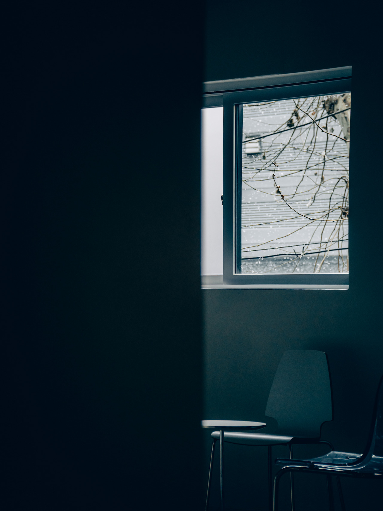 의자는 높고 좁았고, 테이블은 컵 하나 올리면 끝날만큼 작았다.