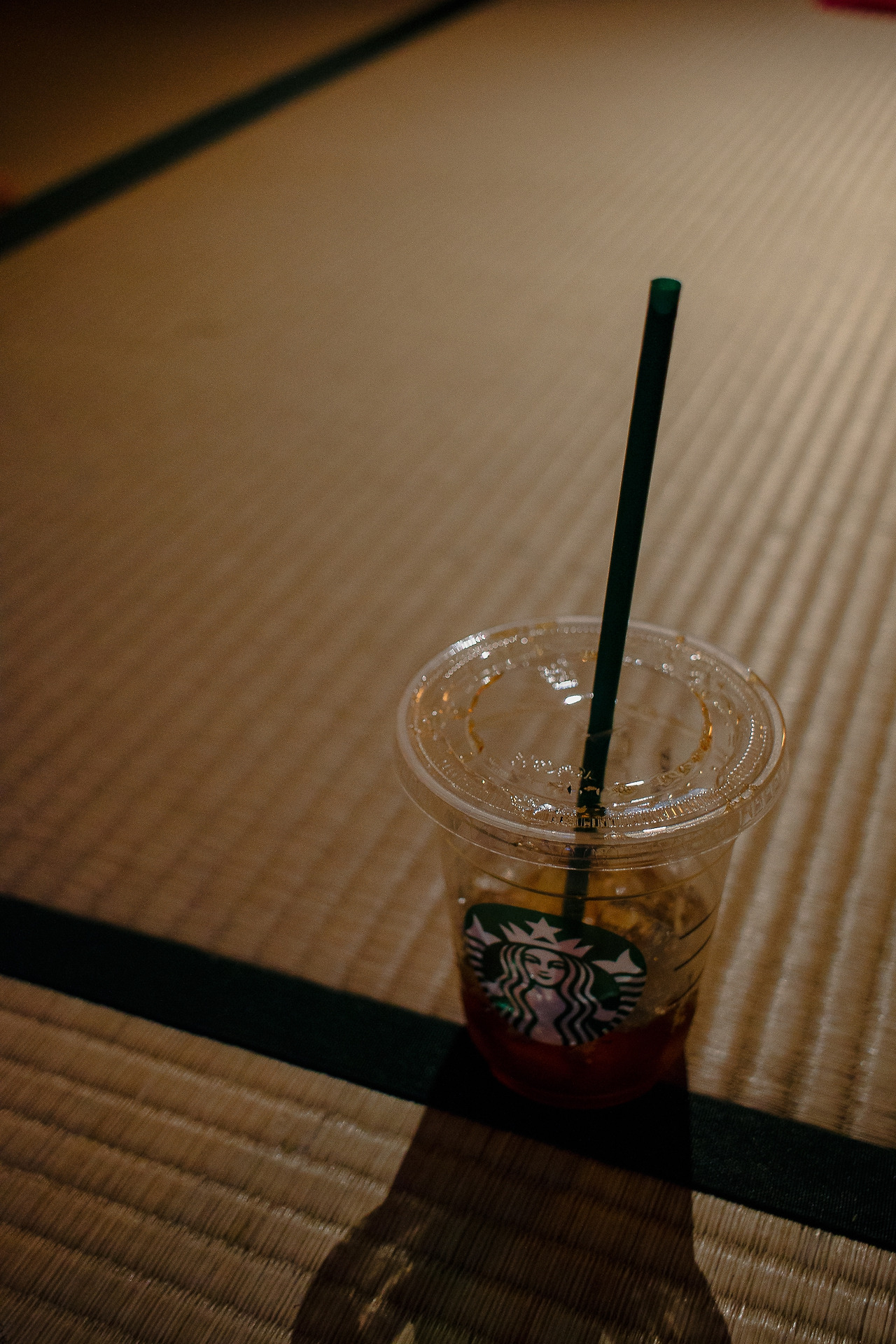 다다미 위의 스타벅스 컵은 묘한 긴장을 품었다.