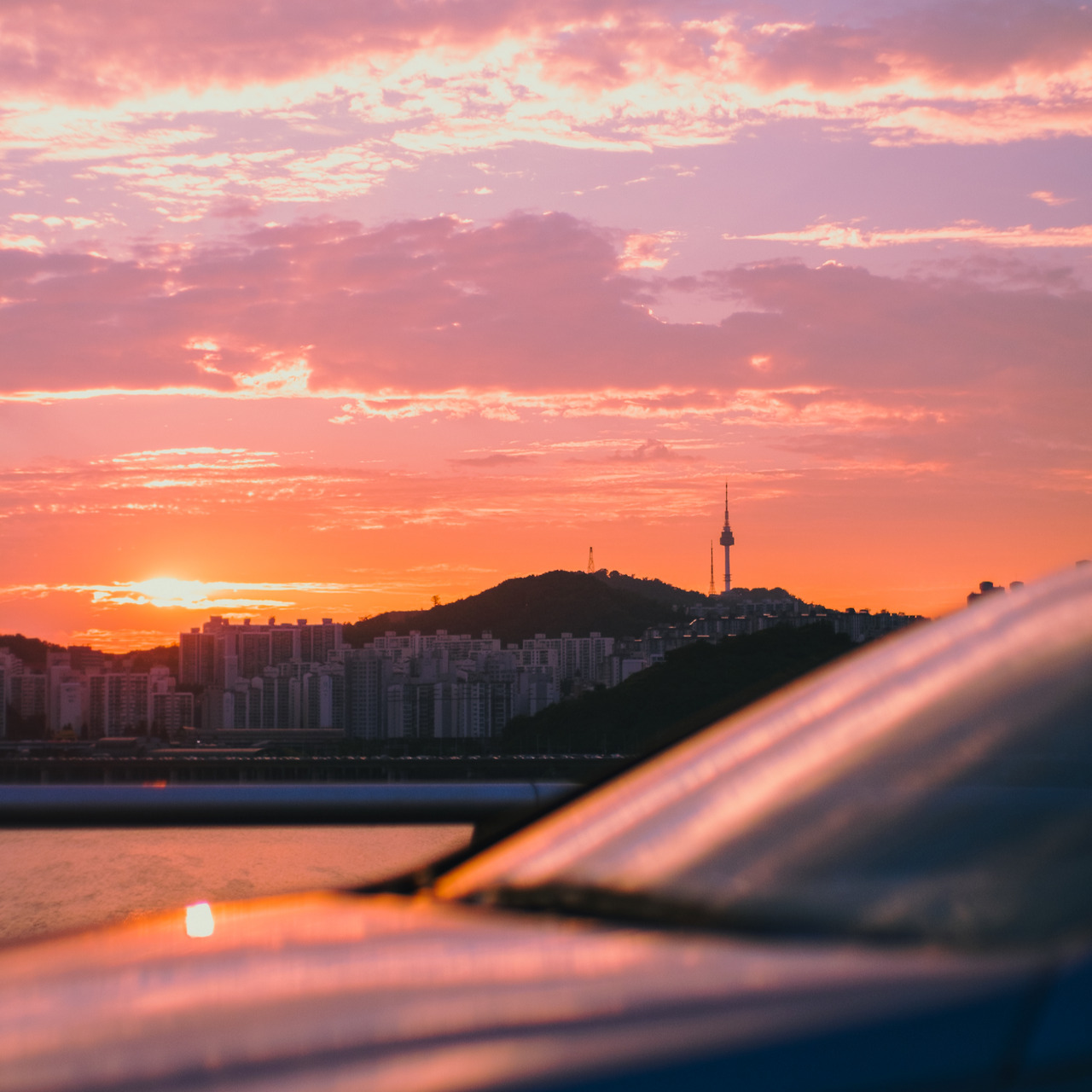 퇴근길, 붉은 노을이 강 위에 비칠 때 도시는 또 다른 방식으로 말을 걸어온다.