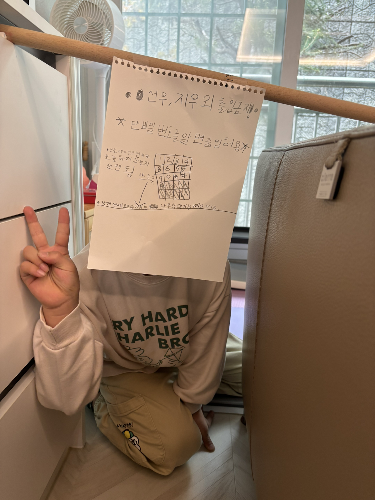 어김없이 신나는 개구쟁이 눈 빛으로 물어봅니다. "엄마 여기 우리 공간해도 돼?"