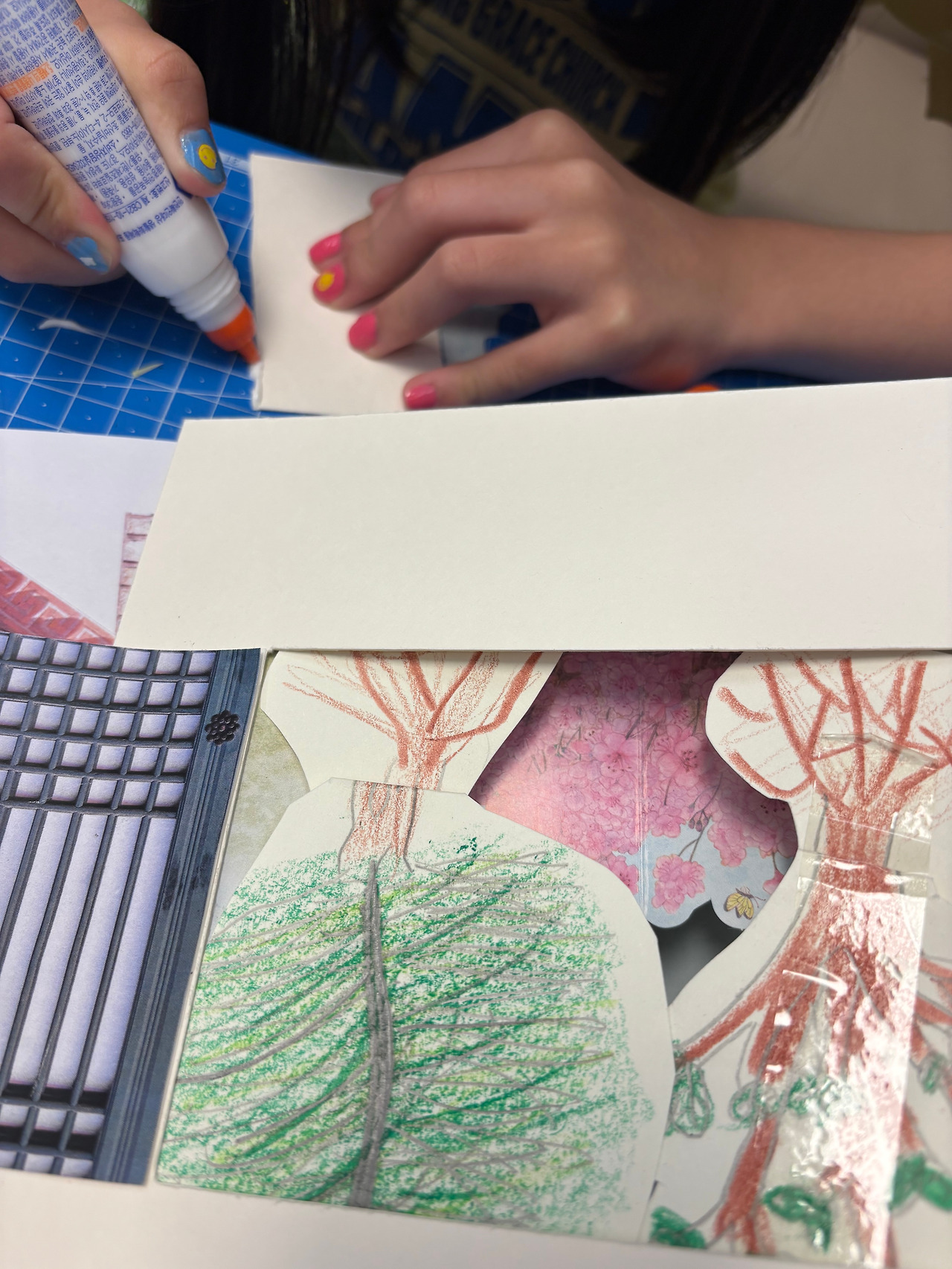 열심히 나무를 그리다, 창문의 안쪽에는 꽃으로 채우고 싶다고 매니큐어를 가져오더니...