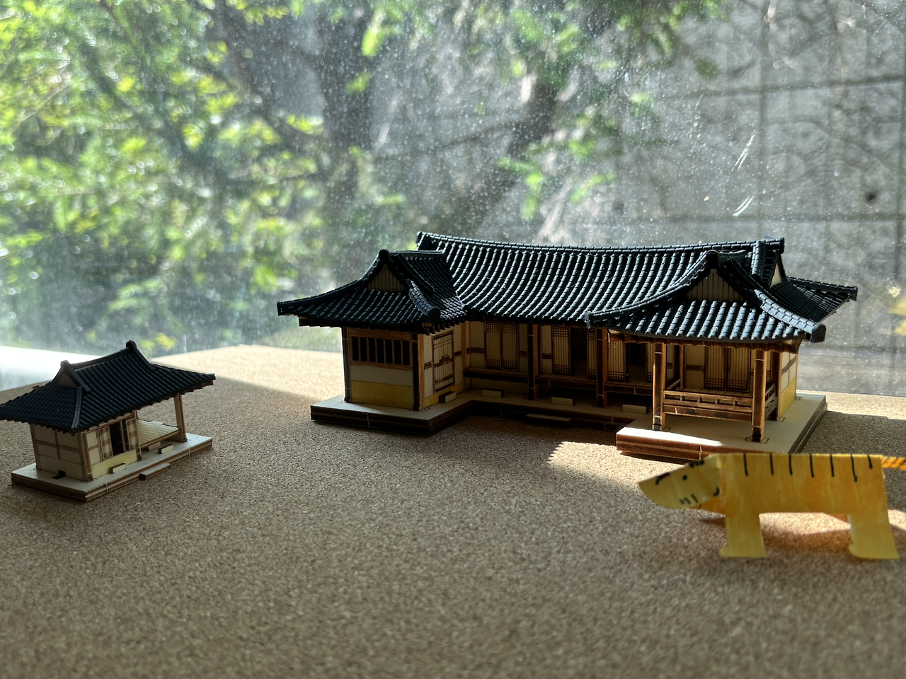 현재 초등 1학년인 Blue가 한옥을 만들어왔다며 가방에서 꺼내 보이며 신나게 설명하네요.