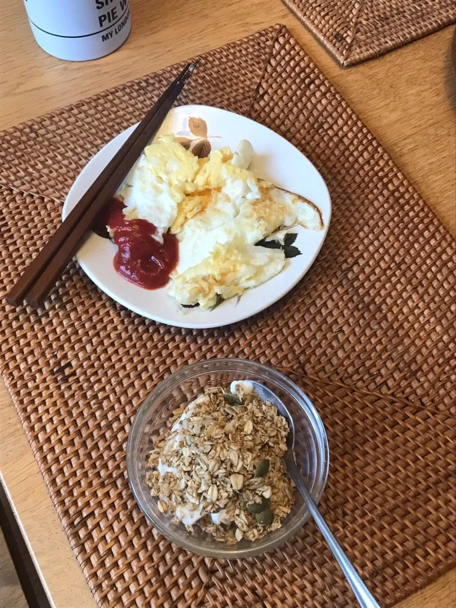 저녁 메뉴는 오늘은 반드시 다 해치워야 하는 그릭 요구르트 그릇 안에 하나도 안달은 그래놀라와 하나도 안달은 시리얼을 넣었다. 하나만 하기에는 좀 부실한가 해서 한 결정인데, 아니 웬걸, 시리얼은 그냥 먹는 게 더 맛있잖아!