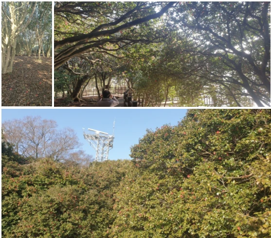 전망대로 올라가는 길은 온통 동백꽃이 차지하고 있었다. 온 섬이 동백꽃 일색이다. 여기도 떨어진 동백꽃으로 하트 모양을 만들어 놓은 곳이 많았다. 사랑을 이야기하고 싶고, 사랑을 하고 싶고, 사랑은 이루고 싶은 마음의 표현이다. 연인도 많았고 나이 든 노인들은 옛날에 왔던 곳을 다시 회상하러 온 것 같다. 어떤 환갑이 훨씬 넘은 할머니 세 분은 하나같이 동백꽃을 머리에 꼽고서 사진을 찍는 분들도 있었다. 얼굴에는 웃음이 가득한 소녀의 웃음이었고 마음은 아직 소녀들일 것이다. 오동도 앞바다에는 대형 선박이 많이 정박해 있어서 “여수도 항구다”는 것이 실감 났다. 오동도에서 바라본 육지는 엑스포를 하고 난 후라서 대형 건물과 항구가 잘 정비되어 있었다.