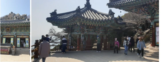 입장료는 일 인당 2 천오백 원을 받았다. 바다 끝에 위치한 향일암은 바다를 보면서 바위를 배경으로 위치해 있었다. 올라가면서 눈에 띄는 바위틈이 있었다. 해탈문이다. 이 문을 통과하면 해탈한다는 뜻일 것이다. 이렇게 기이하게 생긴 바위와 바위틈이 무척 많았다.