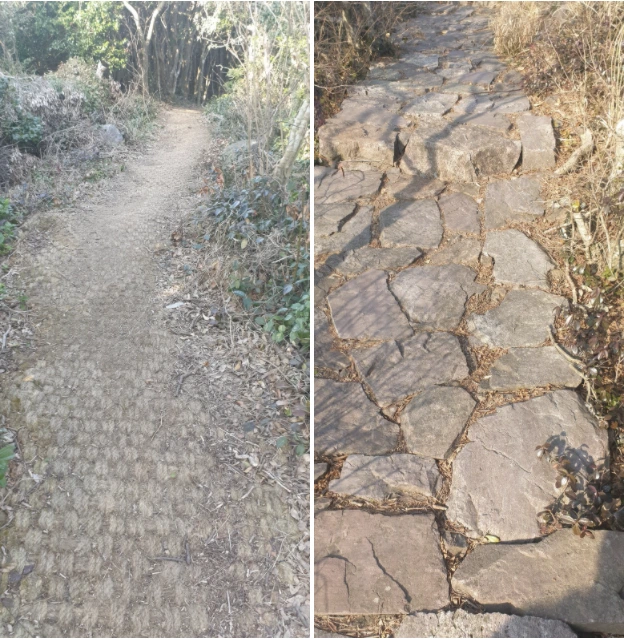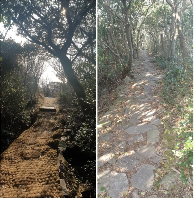 계속 오르막이지만 가급적 계단을 만들지 않고 등반하기 좋게 하려고 노력한 흔적을 볼 수 있었다. 자연석으로 계단을 만들지 않고 평평하게 만들어서 등반하기 좋게 만든 것이나 아니면 천연 야자 매트를 만들어 걷기도 좋고 환경도 많이 생각하면서 조성되었다. 급한 곳은 계단으로 만들었지만 많은 구간이 이런 식으로 만들어져 있다.