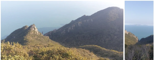 한 시간 정도 산행을 하니까 깃대봉이 나왔다. 정상에서는 흑산도가 보이면서 터미널 홍도에서 반대편 마을로 가는 길이 있었다. 오늘은 날씨가 너무 좋아서 홍도의 좋은 풍광을 모두 보여 주었다.