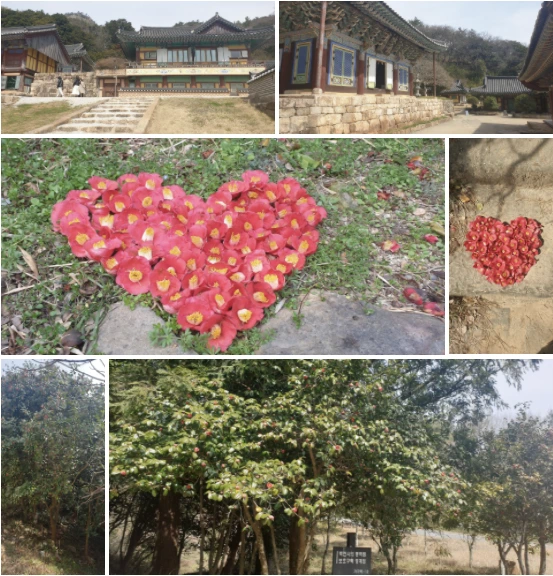 동백나무가 너무나 많아서 떨어진 동백꽃도 엄청났다. 동백나무는 남해안의 섬에 가면 흔히 보는 나무이다. 백련사의 동백나무가 많지만 다른 곳의 동백나무와 차이는 없다. 떨어진 꽃들이 지천에 널려 있다. 그런데 여러 곳에서 떨어진 동백꽃을 사랑 마크인 하트를 만들어 놓은 것을 보았다. 그 만들어진 하트를 보고 백련사에 이맘때쯤에 많은 관광객이 올 수 있는 좋은 생각이 떠올랐다. 백련사의 떨어진 동백꽃으로 사랑 마크인 하트를 만들면 사랑이 이루러 지거나 짝이 없는 사람은 짝을 생긴다는 소문을 내는 것이다. 그러면 이맘때쯤에 사랑하는 사람들이나 짝을 찾는 사람들이 이 백련사에 모여들어 넘쳐 날 수도 있을 것이다. 와서는 떨어진 동백꽃을 주어서는 하트를 만들고 기념사진을 찍고 갈 것이다. 이곳에는 동백나무가 너무나 많아서 하트를 만들기에는 충분하다. 사랑이 이루어지는 백련사가 되는 것이다.