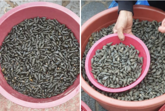 보성 오일장에는 바다 고동과 민물 고동을 같이 팔고 있었다