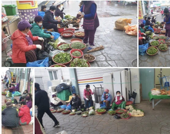 할머니들은 곡물 가게 앞쪽이나 오일장에 들어오는 입구에서 옹기종기 모여 있었다.