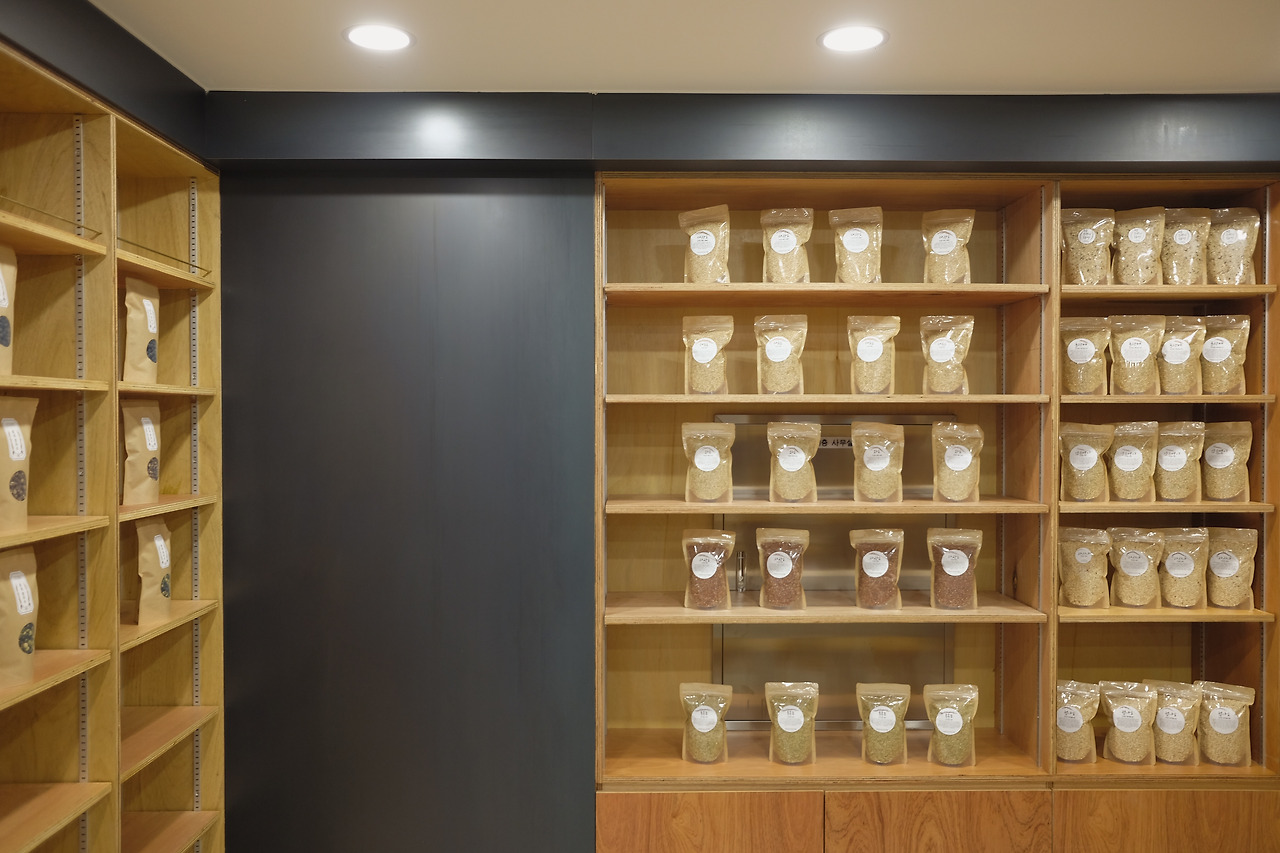 4. 도정과정을 직접 볼 수 있는 도정 공간은 들어오는 입구 카운터 앞에 배치되어 있어서 공간의 정체성을 있는 그대로 보여줍니다.