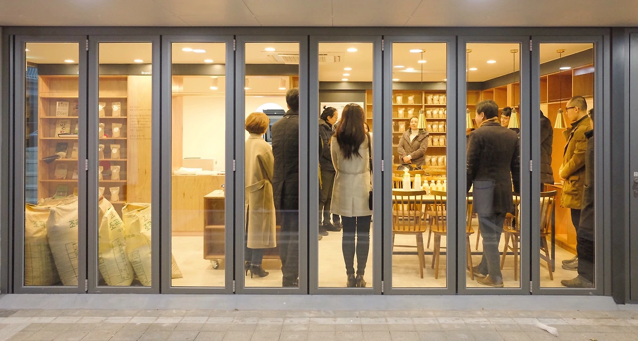 저희는 <동네, 정미소> 공간이 단순히 쌀만 판매하는 곳이 아니라 쌀과 관련된 다양한 ‘경험’을 할 수 있는 곳, 즉 새로운 라이프스타일을 만날 수 있는 곳이 되기를 바라는 마음으로 기획과 설계를 진행했습니다.