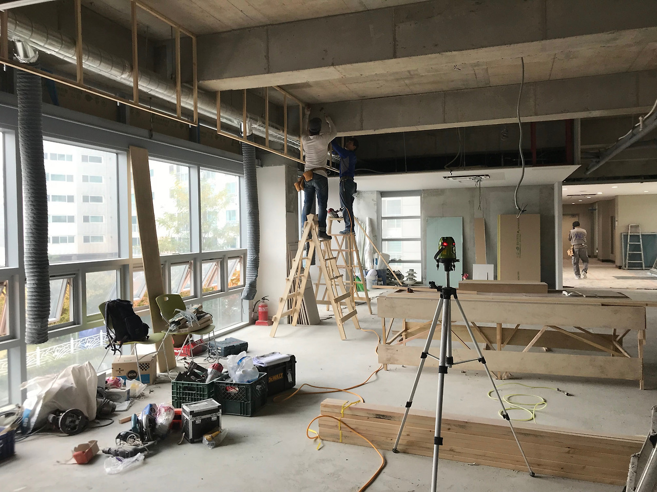 이렇게 같이 논의한 마을활력소는 몇 달간의 공사기간을 거치고 만들어졌습니다. 처음에 구상하였던 공간이 잘 구현될 수 있도록 구,동 담당자와 주민운영진이 현장 감리를 틈틈이 같이 진행해 주셨고, 주요한 자재는 같이 고르기도 하였습니다.