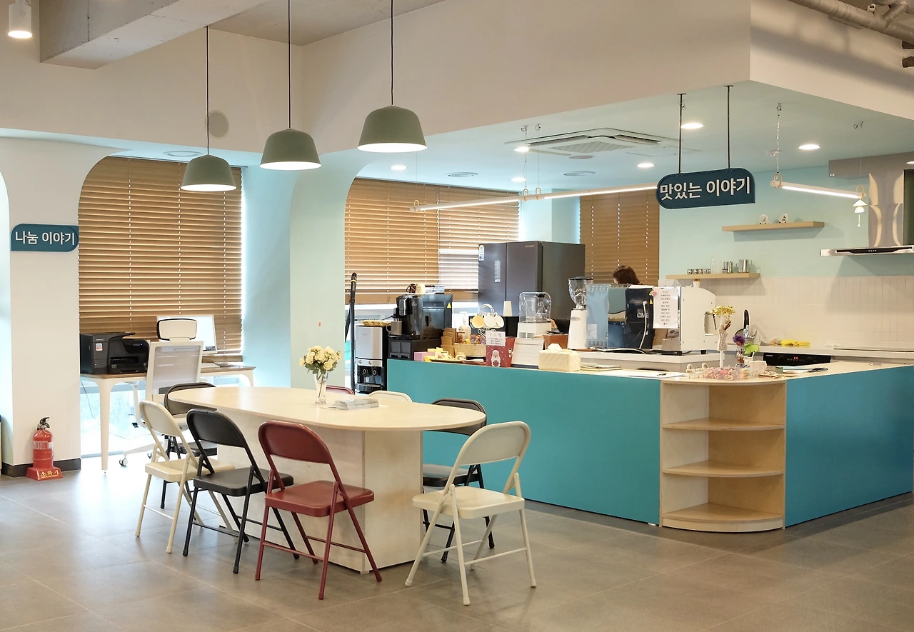 주방공간은 큰 요리보다는 작은 규모의 티타임을 가질 수 있는 정도의 시설로 계획하였고, 앞으로 이곳에서는 다양한 프로그램을 기획하여 진행 하시게 될 것입니다.