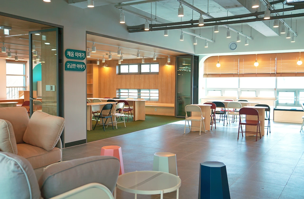창5동은 비교적 큰 규모의 주민센터 내에서 3층 공간을 작은도서관과 열람실로 사용하고 있었습니다. 하지만 규모에 비해 잘 활용되지 못하는 탓에 넓은 공간이 비어있고 잘 쓰여지지 않고 있었습니다. 동시에 마을활동에 적극적인 주민모임들이 많아지면서 모임공간에 대한 필요도가 높아지고 있어 3층공간을 마을활력소로 재구성하기로 하였습니다.