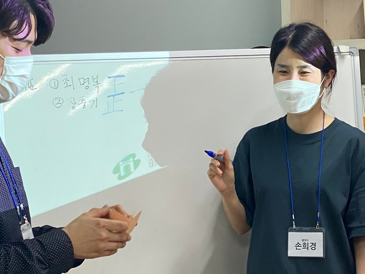 더불어 홍제커뮤니티센터 주민운영진을 이끌어 갈 대표, 부대표, 간사 등 임원을 선출하였는데요. 주민운영위원 중 타인 추천을 받은 2인이 입후보했고, 전체 투표를 진행하여 대표와 부대표를 선출하였습니다. 간사는 대표와 부대표가 임명하는 형식으로 진행되었습니다.