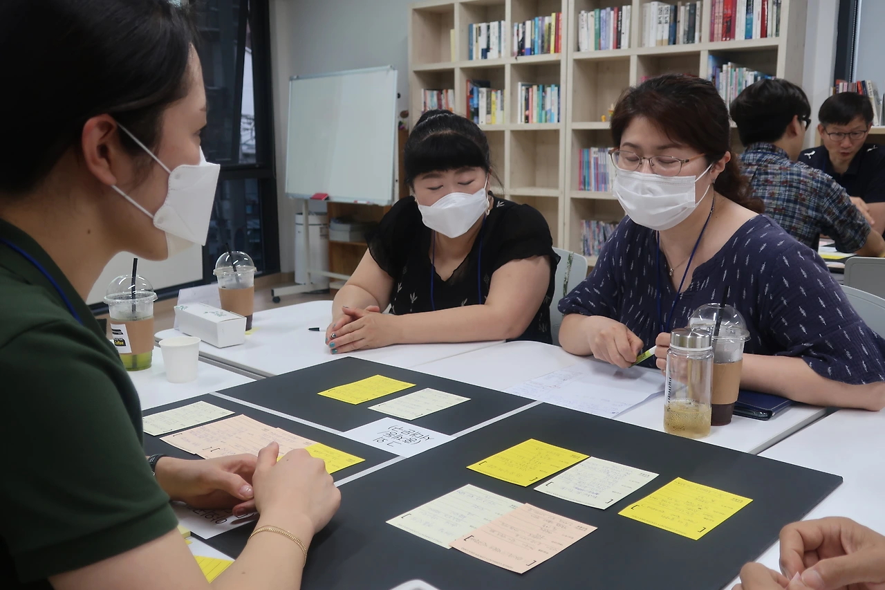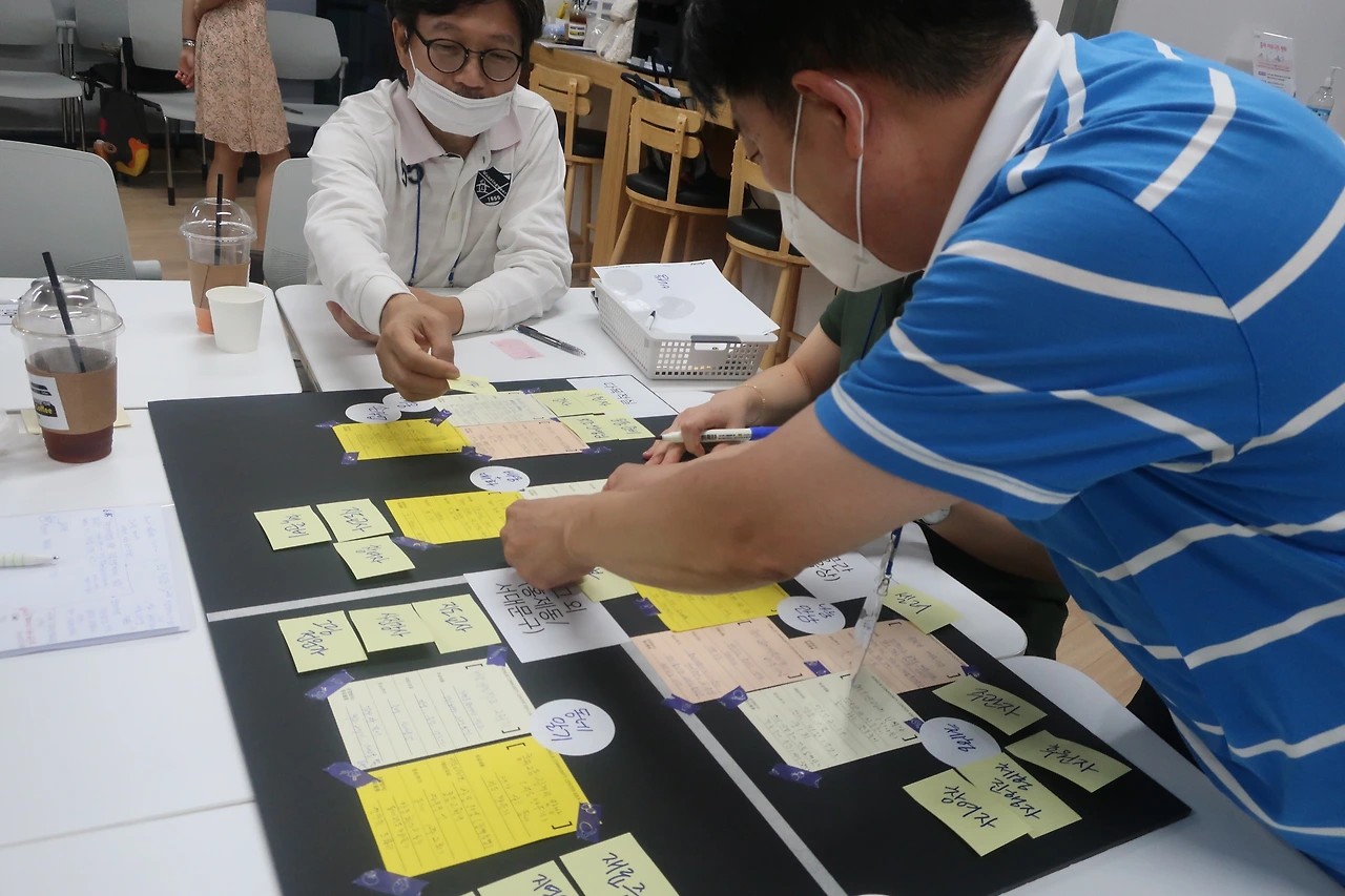 운영기획 워크숍은 주민들이 자율 운영하는 공간 특성상 기초가 되는 운영규약과 운영 약속, 공간 운영규칙 등 운영매뉴얼을 도출합니다. BLANK는 지난 워크숍에서 결정한 홍제커뮤니티센터 공간 콘셉트를 바탕으로 팀별로 운영시 예상되는 상황을 논의하고 시나리오로 작성하는 운영 시뮬레이션 보드게임을 진행하였습니다. 보드게임은 공간, 역할에 대한 정의와 기능을 토의하여 시나리오를 팀별로 작성하고, 전체 공유하는 방식으로 진행되었습니다.