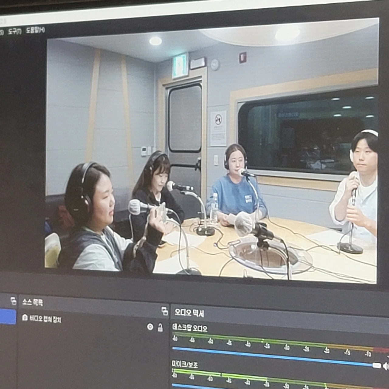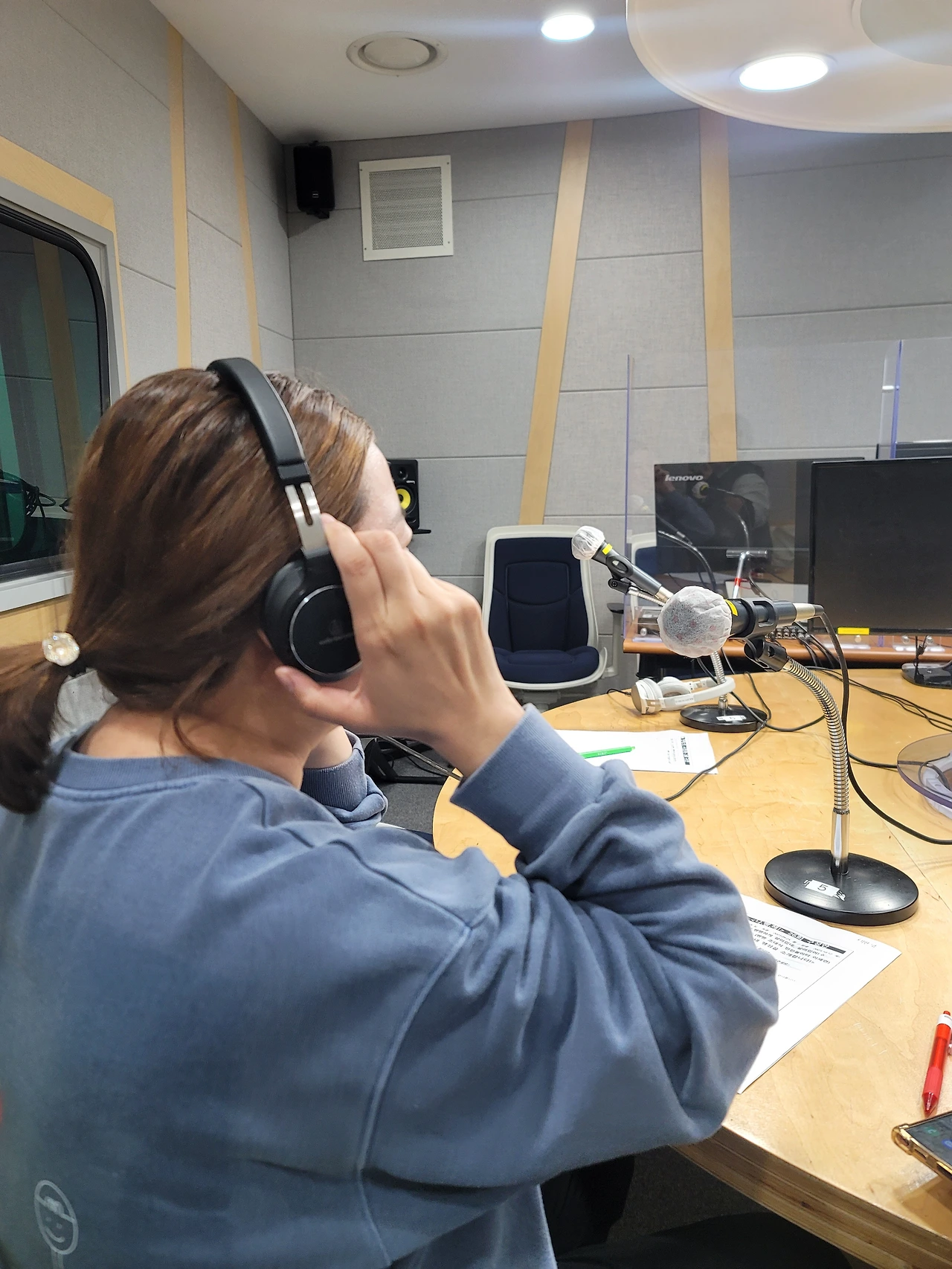 "저 너무 떨리는데요" 대본을 받아보니 더 떨렸다. 개띠랑, 다솜, 두루 작가님과 리허설을 시작했고, 나도 모르게 말을 하고 있었다. (애드리브로 했던 말을 녹음할 때 어떻게 하지?) "아아! 마이크 테스트" 처음엔 로봇처럼 또박또박 말하다가 작가님들과 이야기를 주고받다 보니 금세 편안해졌다.