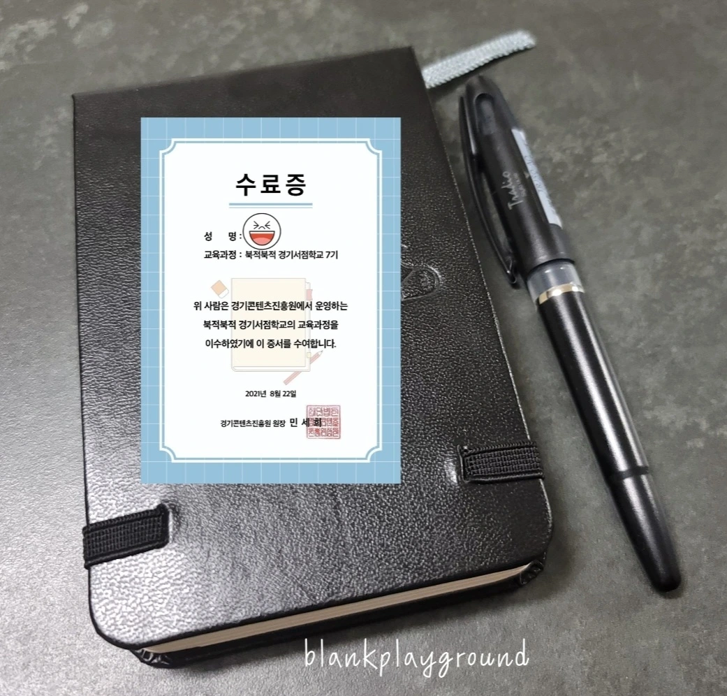 7월 말부터 8월까지 온라인 강좌를 듣고, 북적북적 경기서점학교 2021, 7기로 과정을 모두 수료했다. 강의는 출판유통과 창업 실무, 운영의 실제, 북 큐레이션, 서점의 미래, 공간 기획까지 서점을 준비하면서 궁금한 점들을 온라인 교육 덕분에 회사를 다니며 들을 수 있었다.