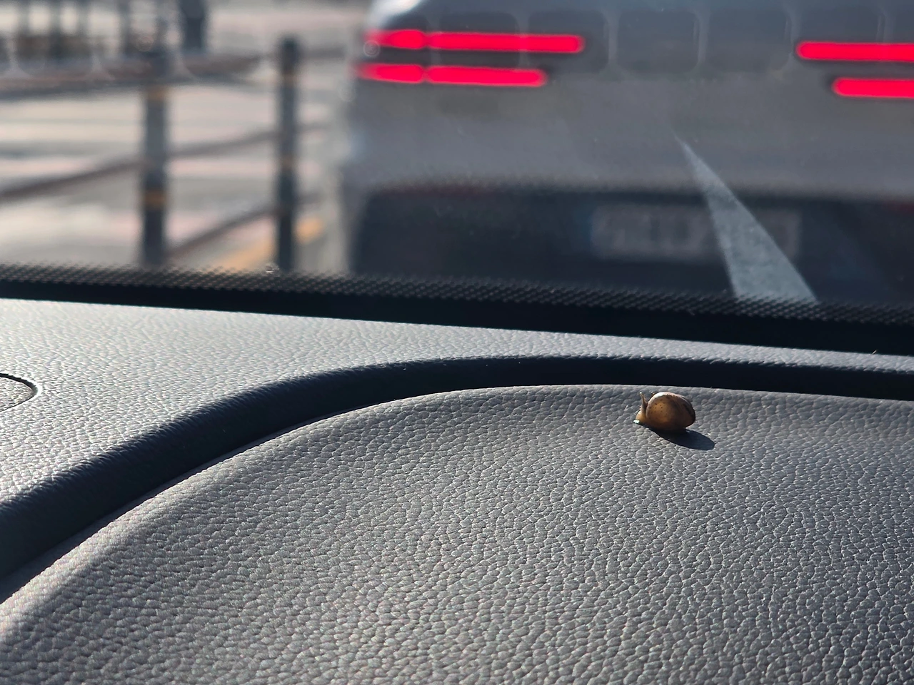 달팽이 한 마리가 붙어있다.