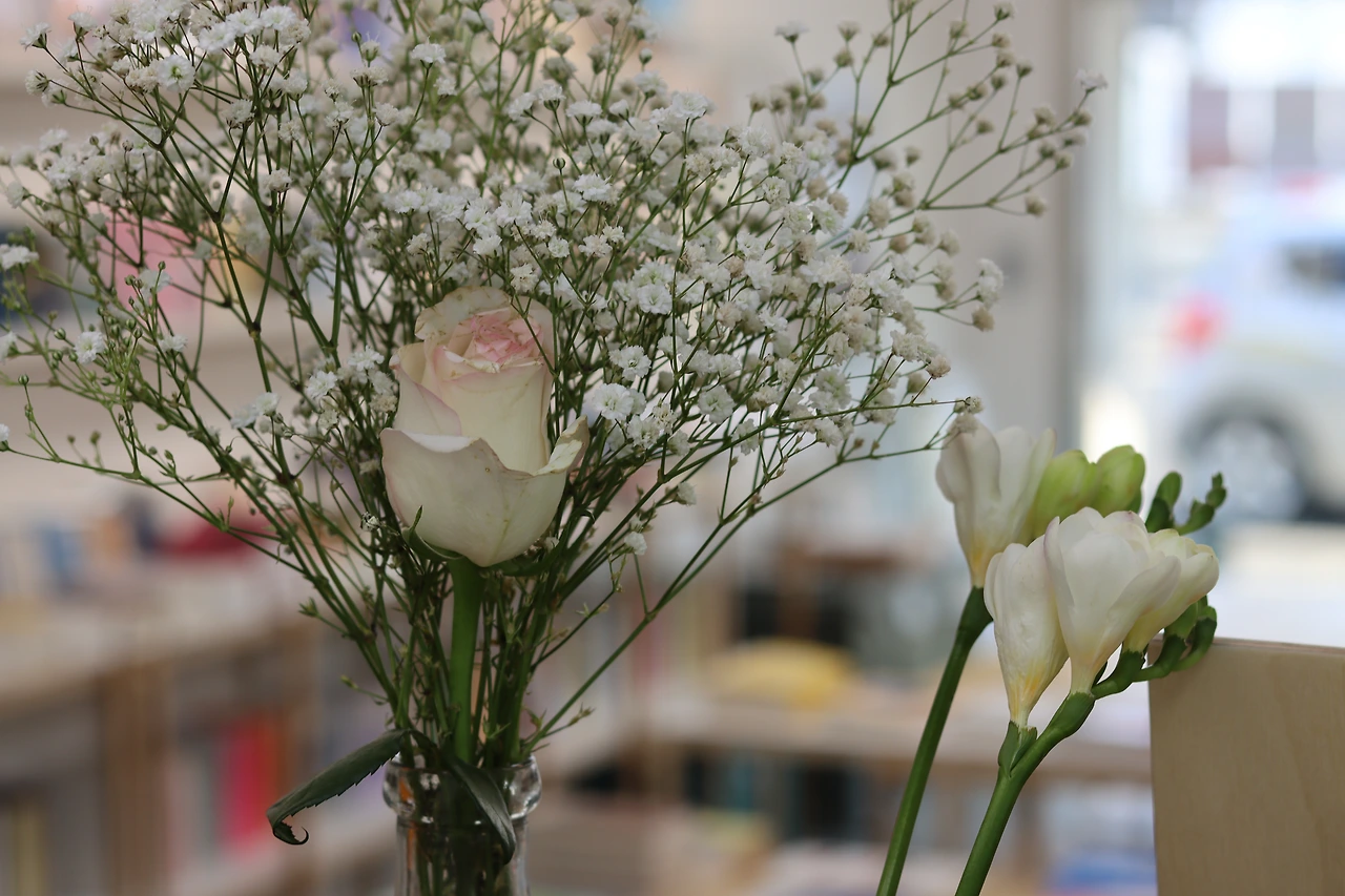 하나는 엄마가 꽃집에서 사 오신 안개꽃과 장미꽃.